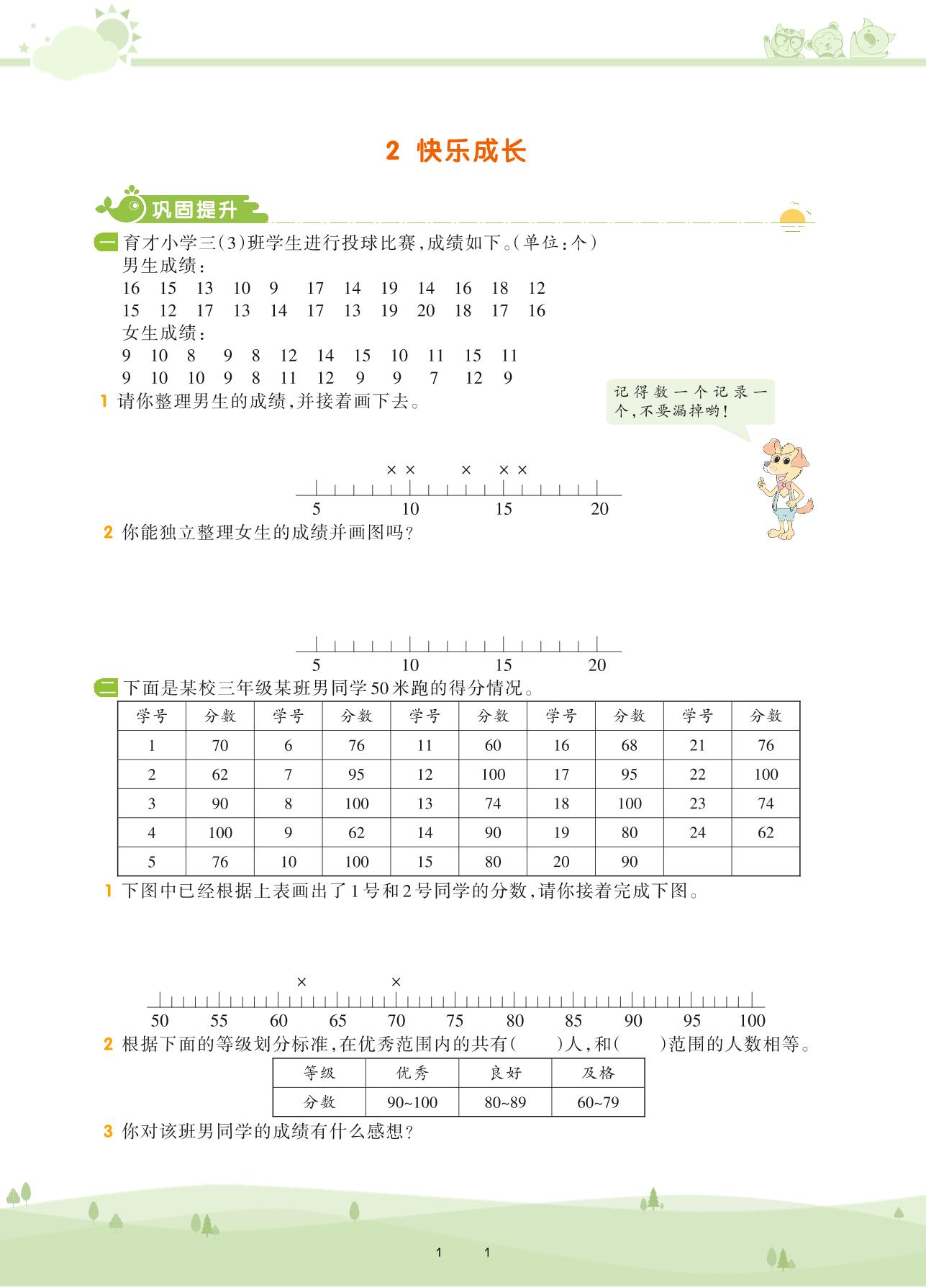 2021下册三年级数学北师版 第七单元 数据的整理和表示——2 快乐成长
