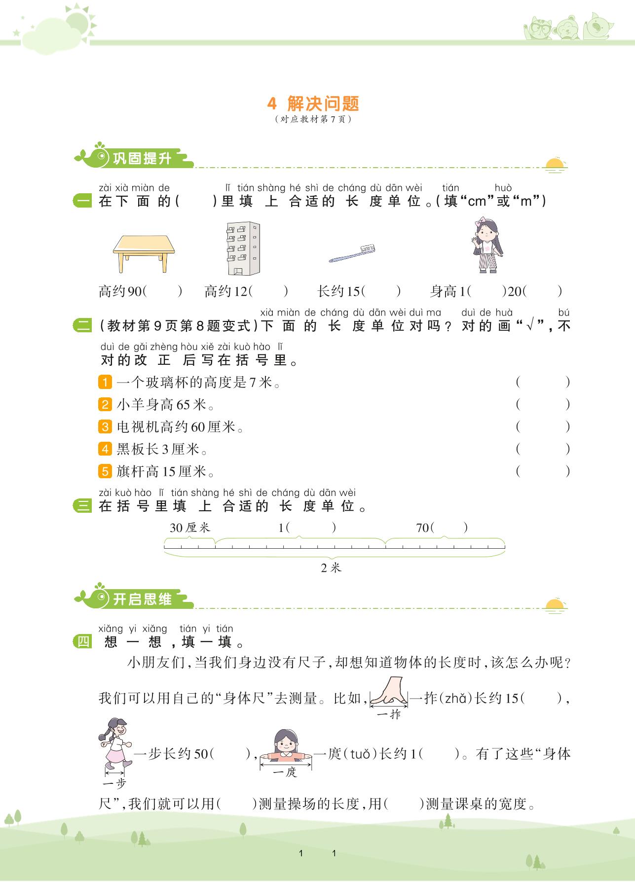 2020上册二年级数学人教版 第一单元 长度单位——4 解决问题