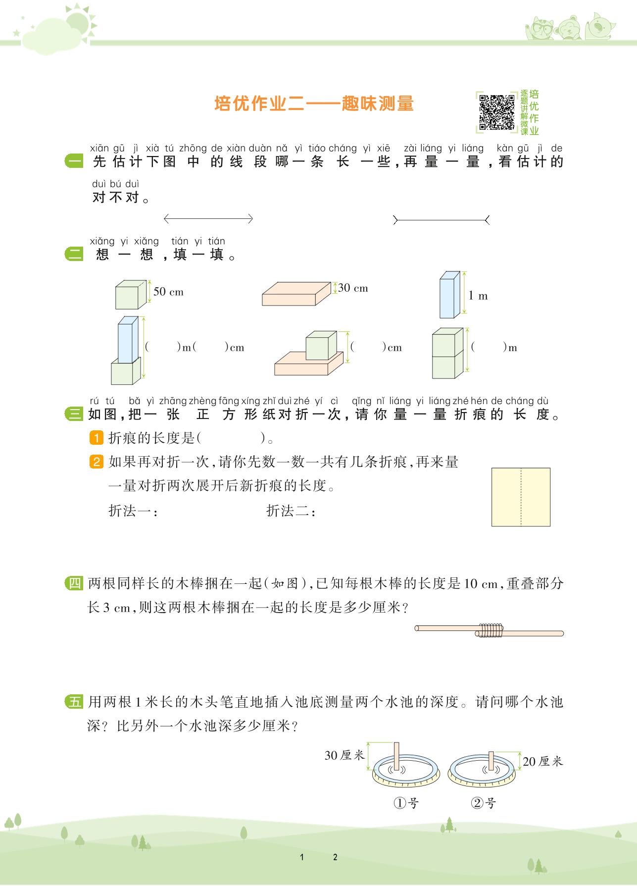 2020上册二年级数学人教版 第一单元 长度单位——培优作业二 趣味测量