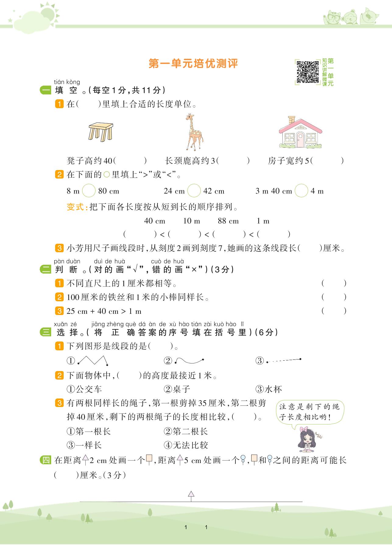 2020上册二年级数学人教版 第一单元培优测评