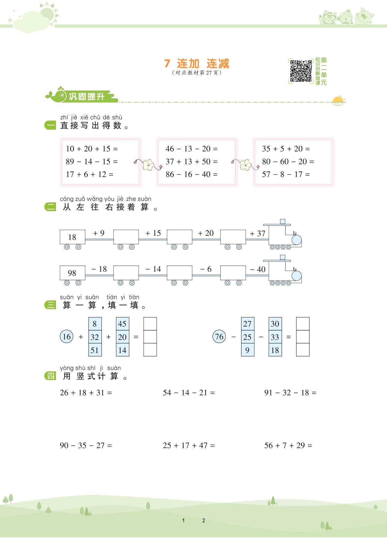 2020上册二年级数学人教版 第二单元 100以内的加法和减法(二)——7 连加 连减