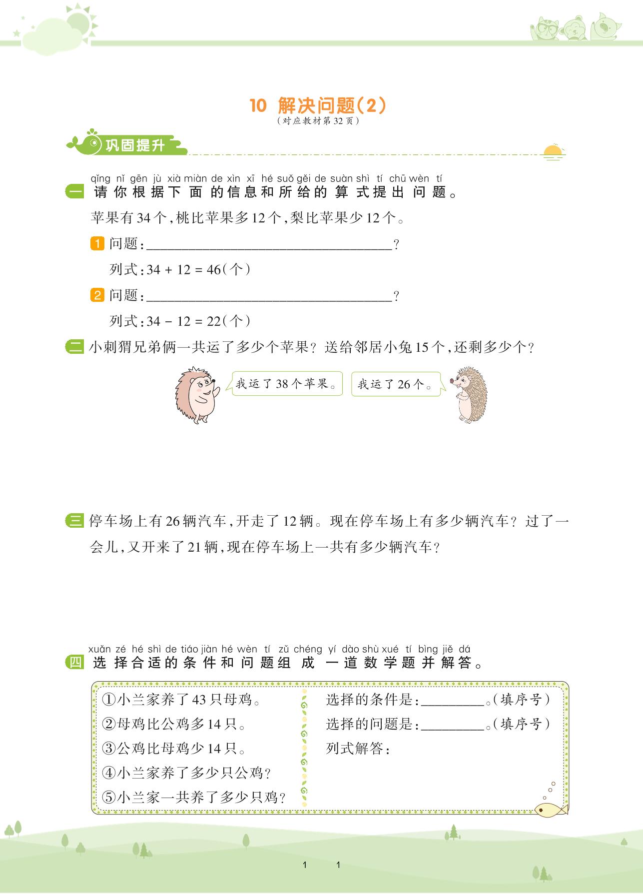 2020上册二年级数学人教版 第二单元 100以内的加法和减法(二)——10 解决问题(2)