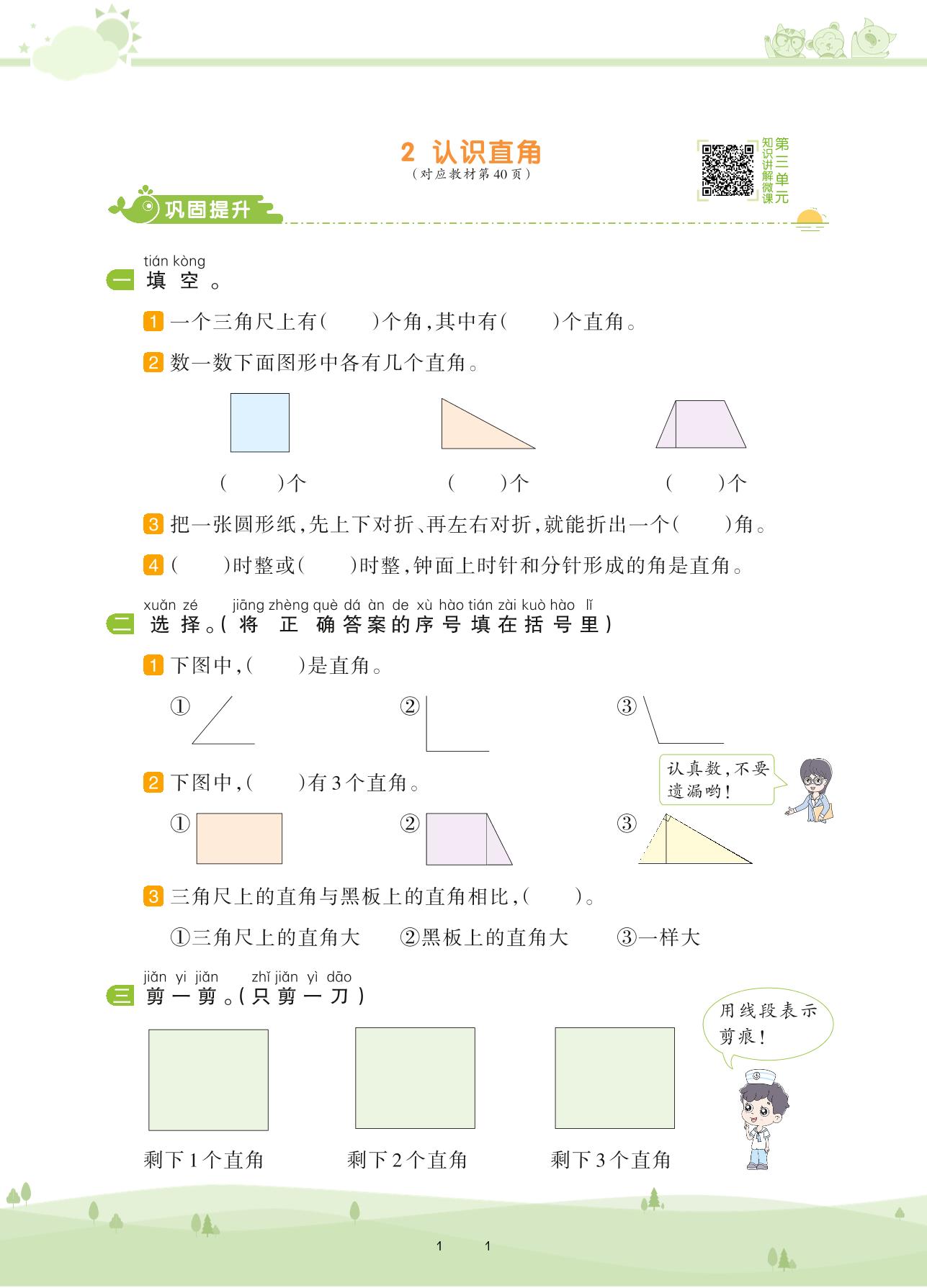 2020上册二年级数学人教版 第三单元 角的初步认识——2 认识直角