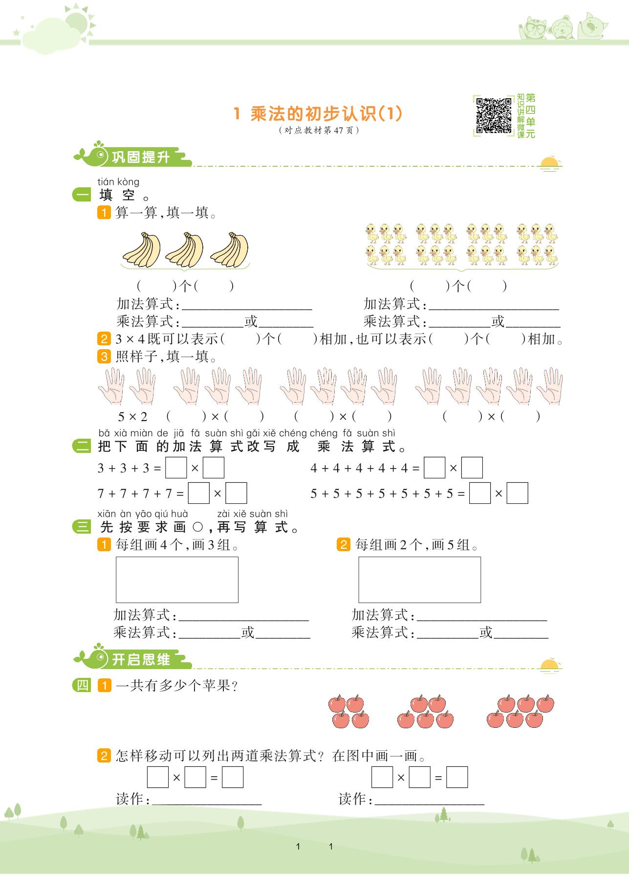 2020上册二年级数学人教版 第四单元 表内乘法(一)——1 乘法的初步认识(1)