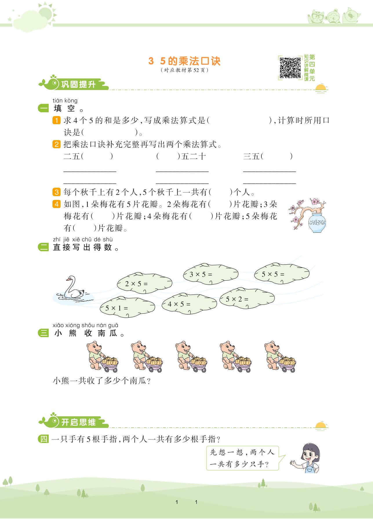 2020上册二年级数学人教版 第四单元 表内乘法(一)——3 5的乘法口诀