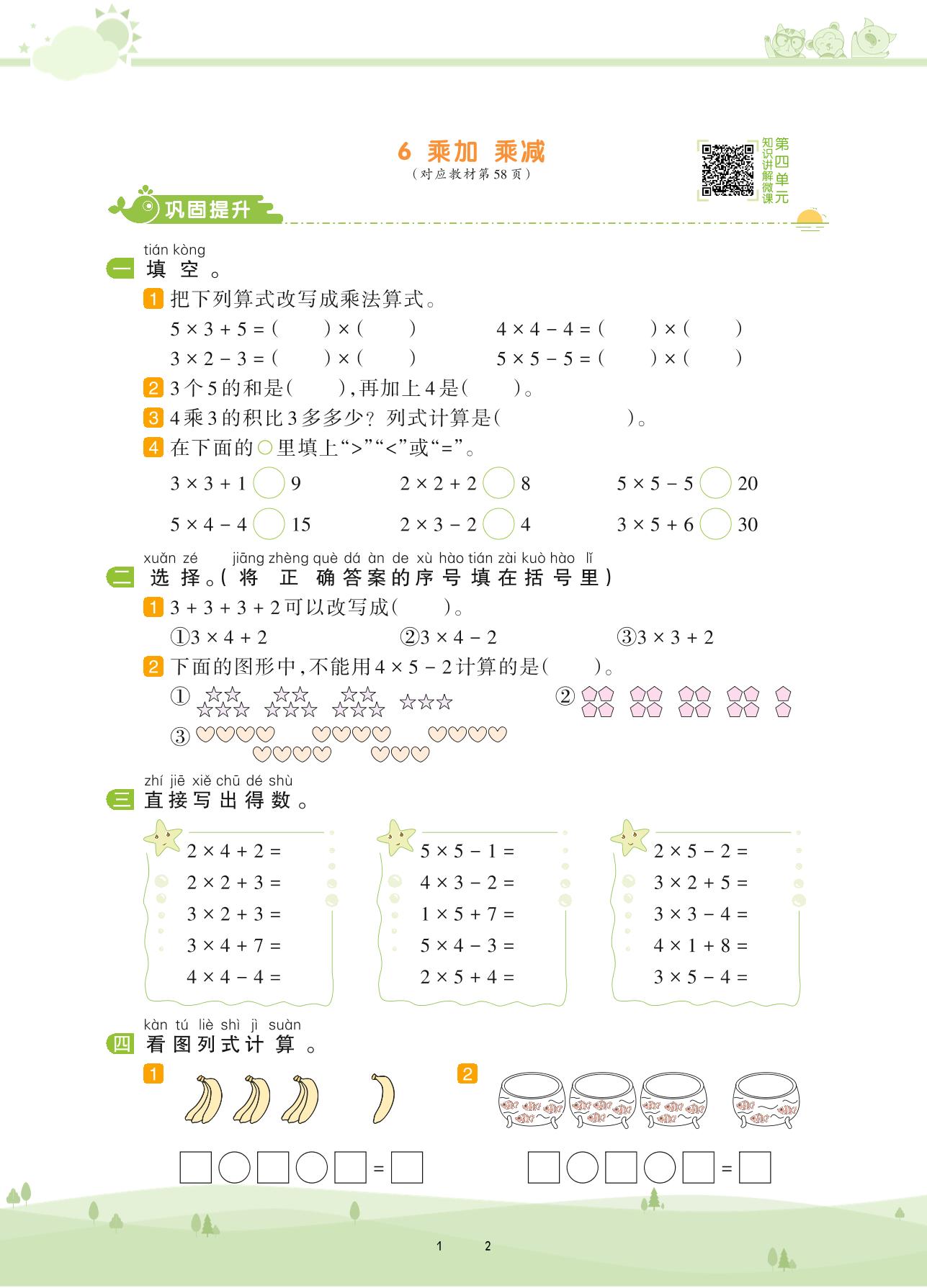 2020上册二年级数学人教版 第四单元 表内乘法(一)——6 乘加 乘减