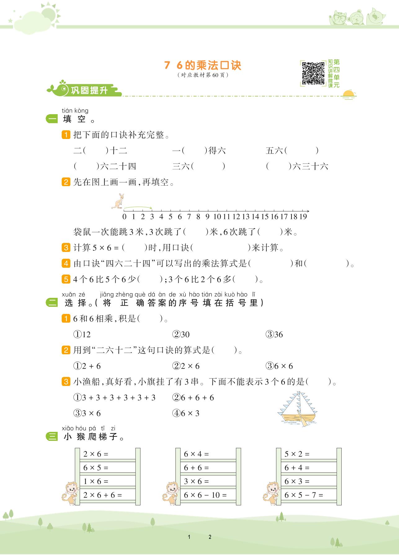 2020上册二年级数学人教版 第四单元 表内乘法(一)——7 6的乘法口诀