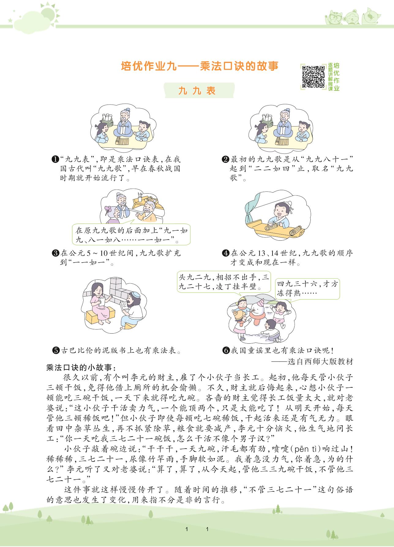 2020上册二年级数学人教版 第六单元 表内乘法(二)——培优作业九 乘法口诀的故事