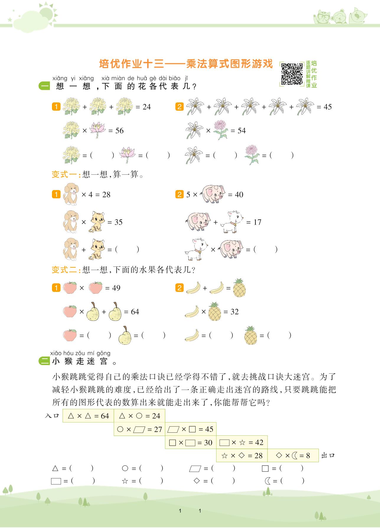 2020上册二年级数学人教版 第六单元 表内乘法(二)——培优作业十三 乘法算式图形游戏