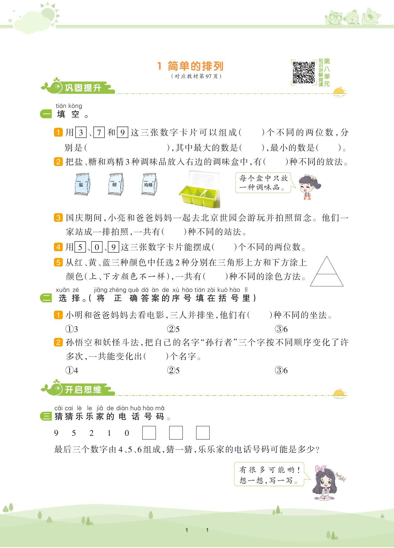 2020上册二年级数学人教版 第八单元 数学广角——搭配(一)——1 简单的排列