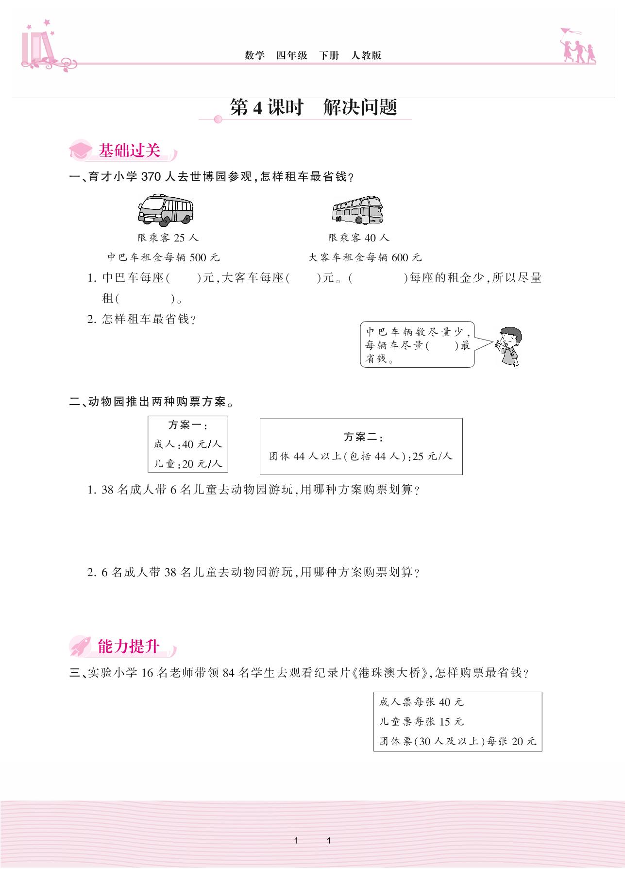 2021下册四年级数学人教版 1 四则运算——第4课时 解决问题