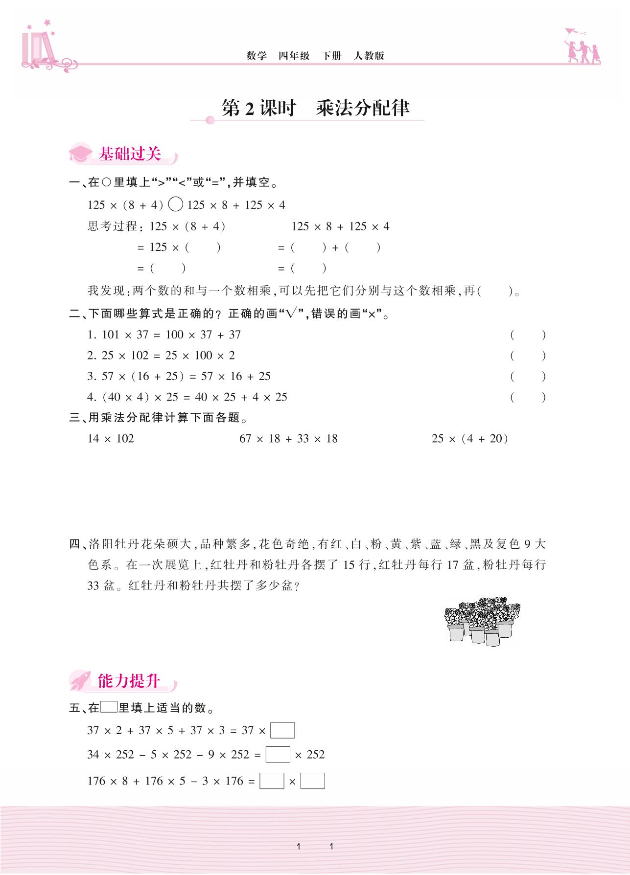 2021下册四年级数学人教版 3 运算定律 2. 乘法运算定律——第2课时 乘法分配律