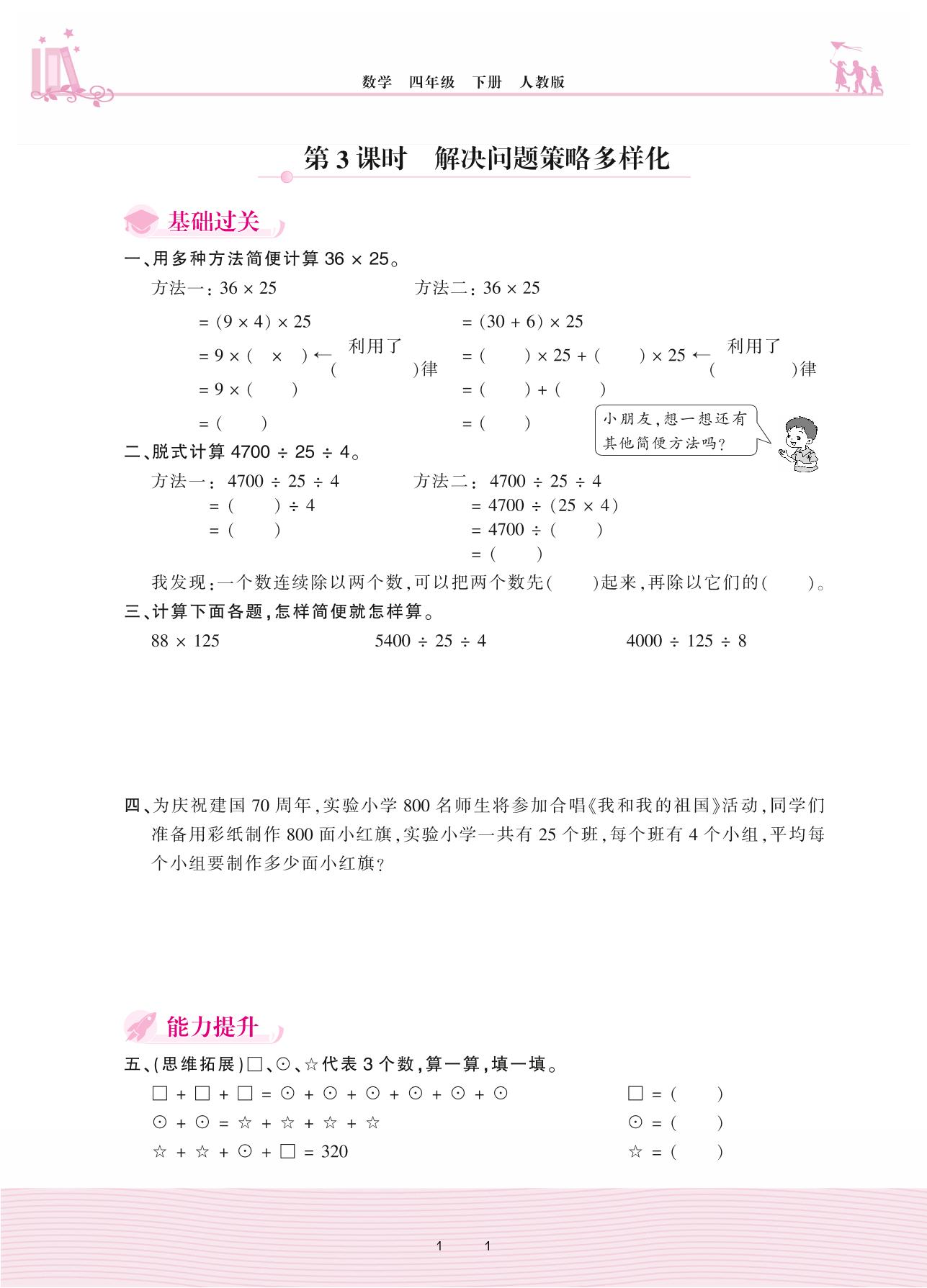 2021下册四年级数学人教版 3 运算定律 2. 乘法运算定律——第3课时 解决问题策略多样化