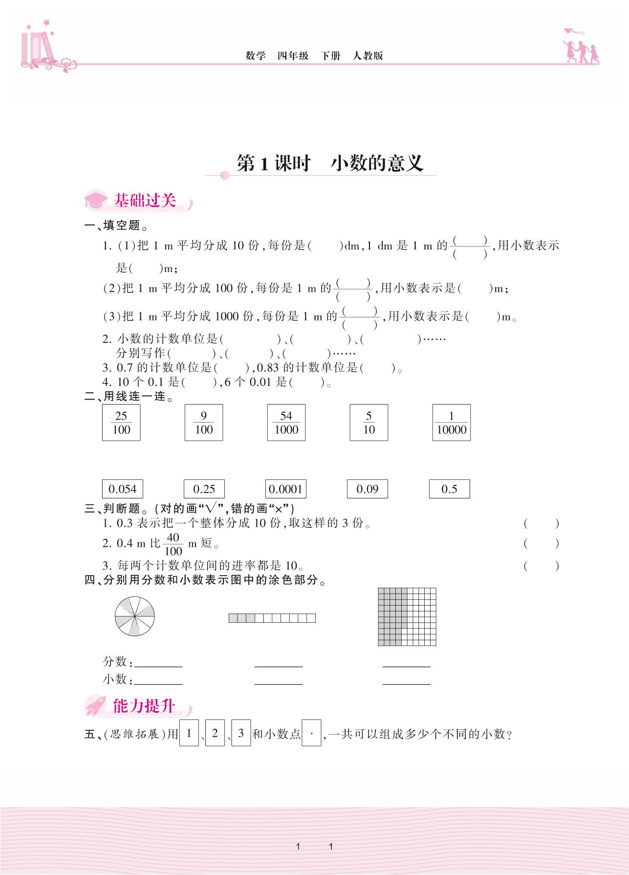 2021下册四年级数学人教版 4 小数的意义和性质 1. 小数的意义和读写法——第1课时 小数的意义