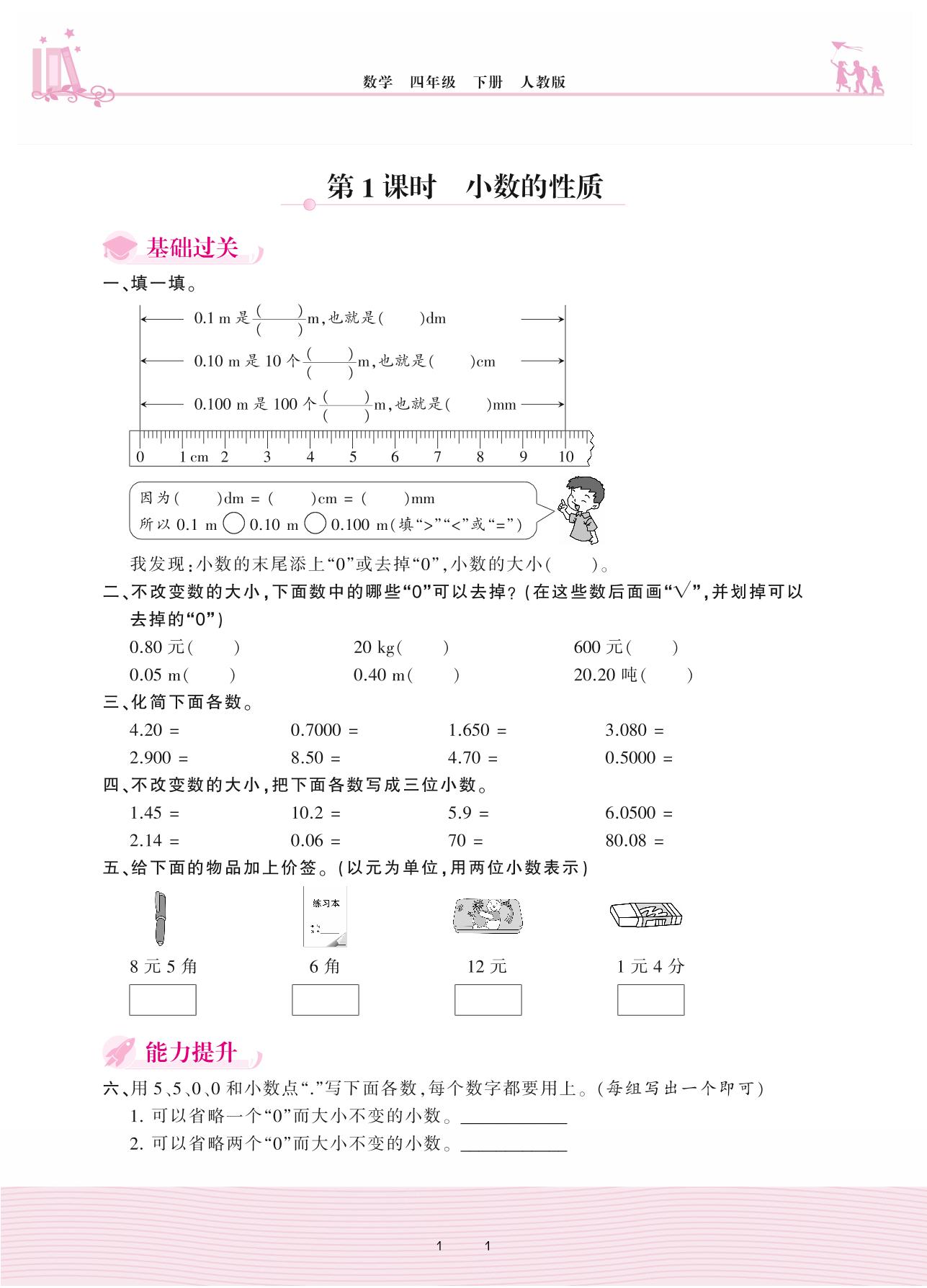 2021下册四年级数学人教版 4 小数的意义和性质 2. 小数的性质和大小比较——第1课时 小数的性质