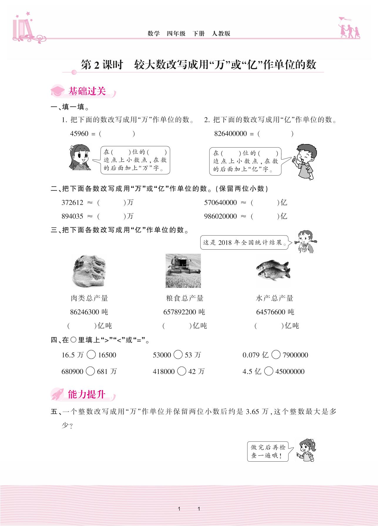 2021下册四年级数学人教版 4 小数的意义和性质 5. 小数的近似数——第2课时 较大数改写成用“万”或“亿”作单位的数