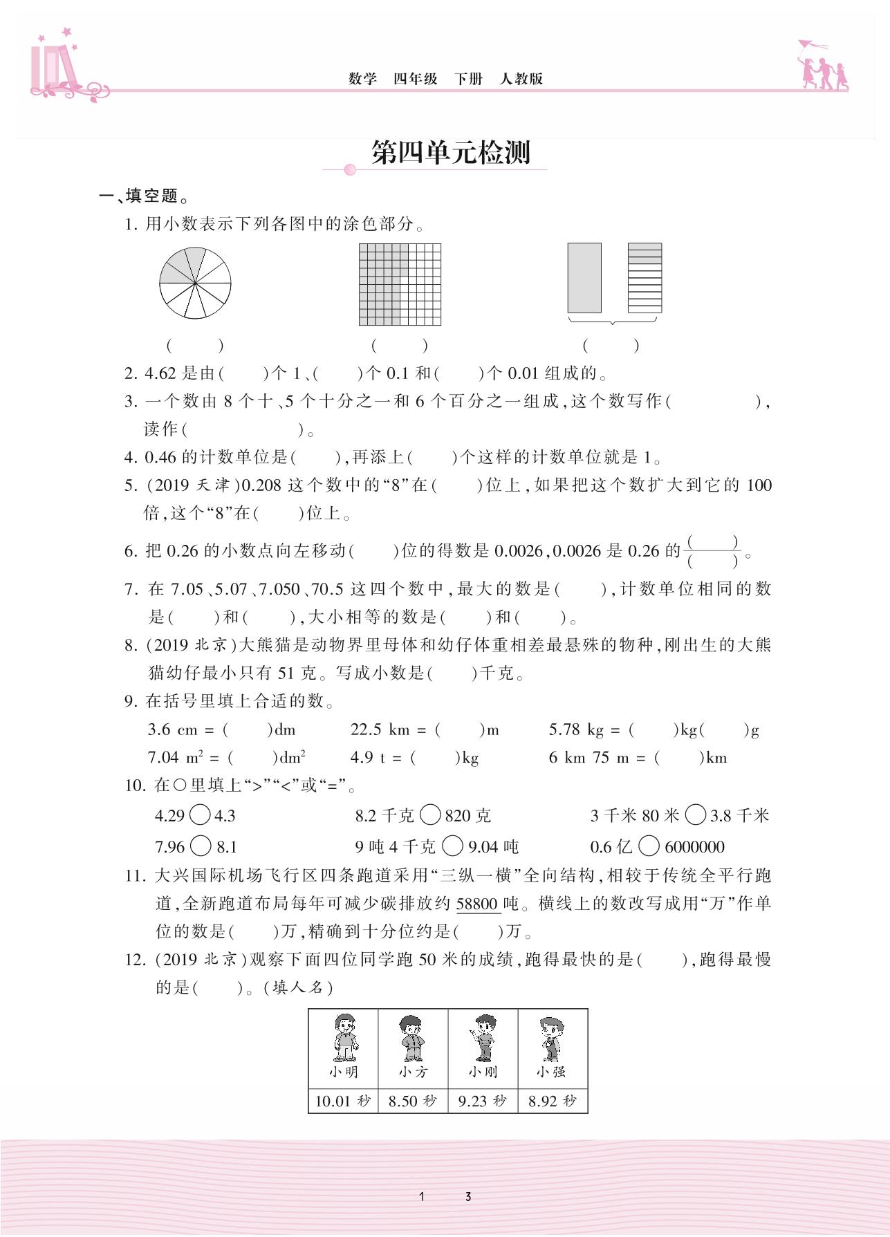 四年级数学人教版下册单元卷