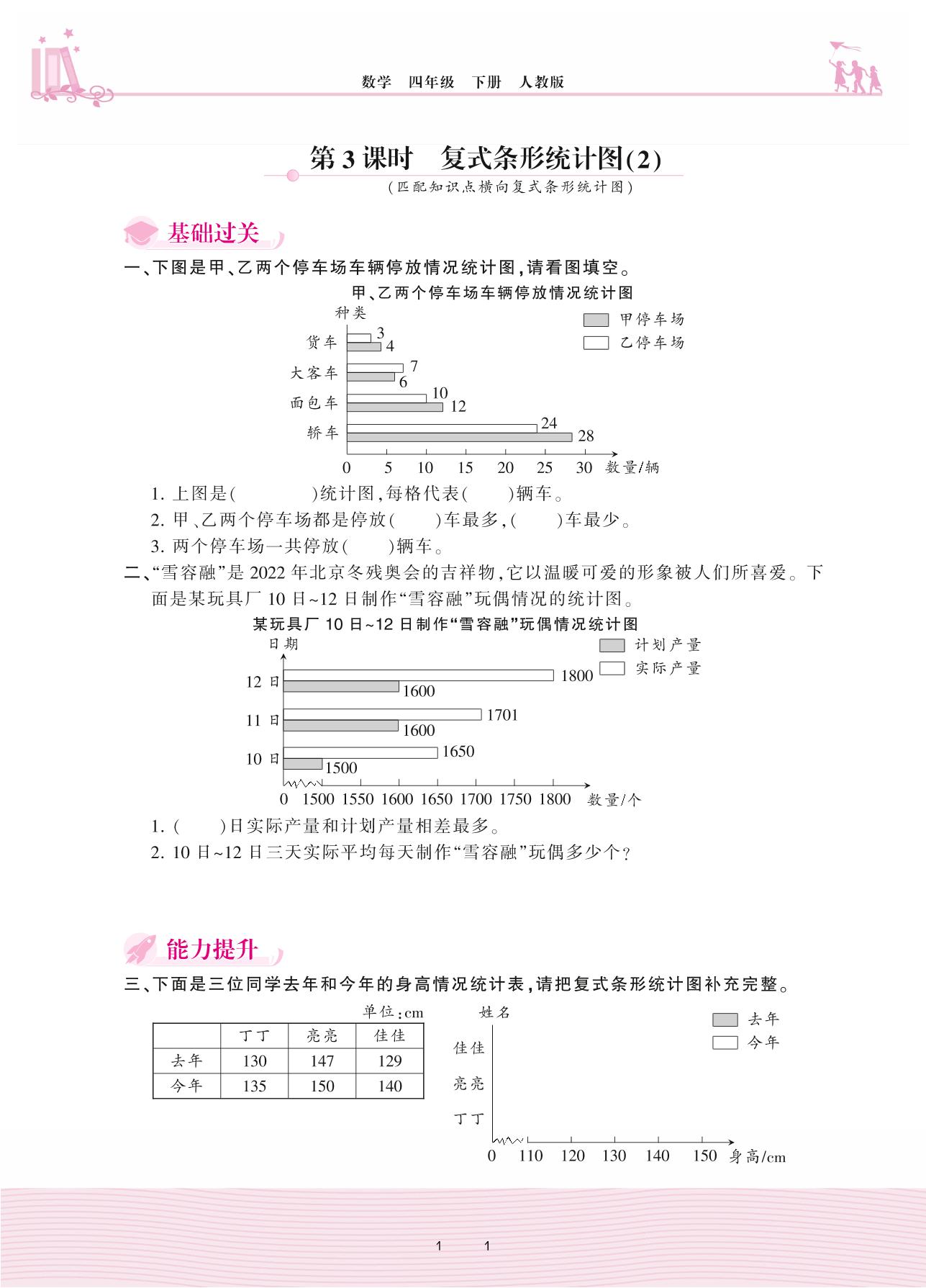 2021下册四年级数学人教版 8 平均数与条形统计图——第3课时 复式条形统计图(2)