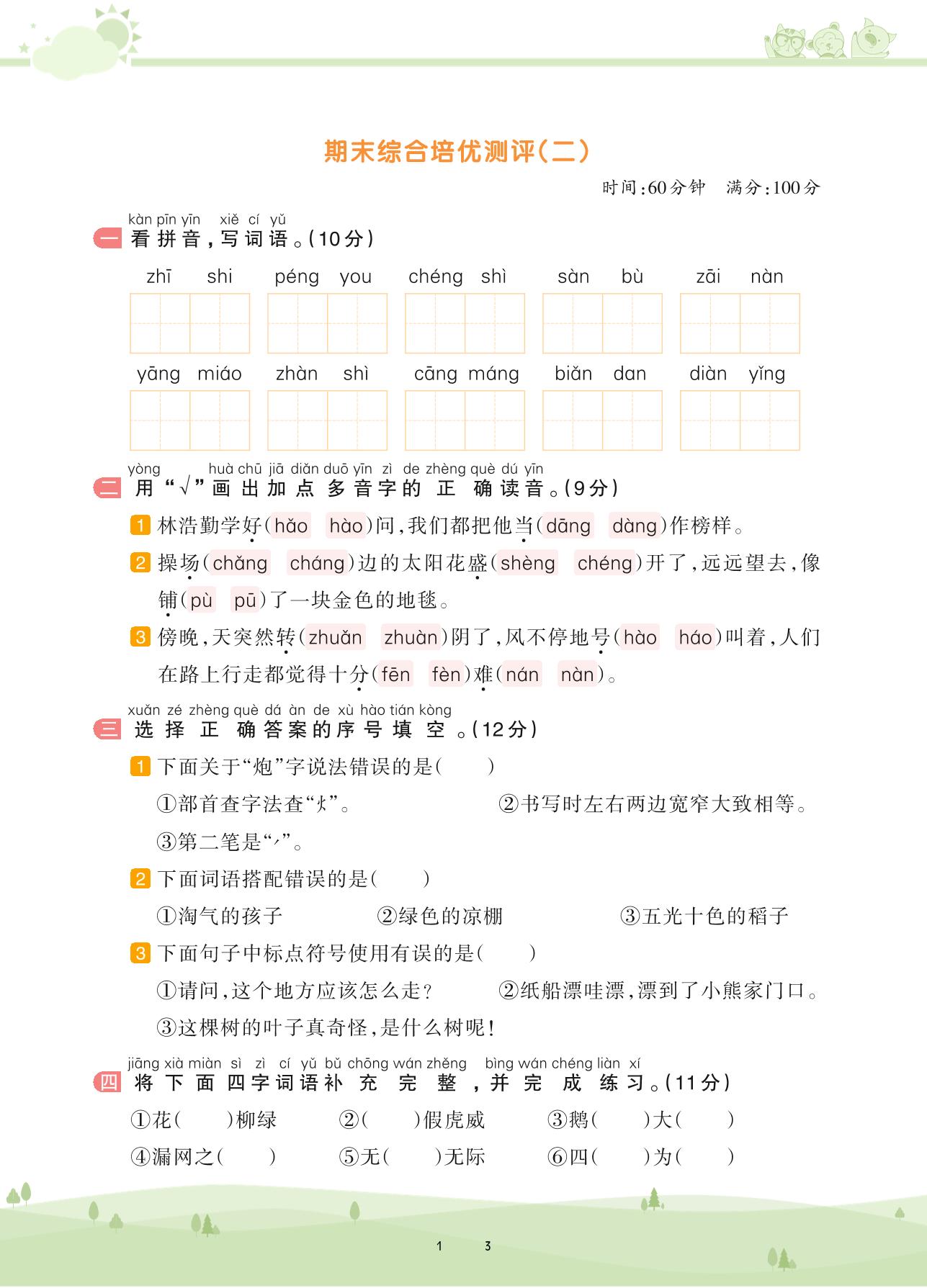 2020上册二年级语文人教版 期末综合培优测评(二)