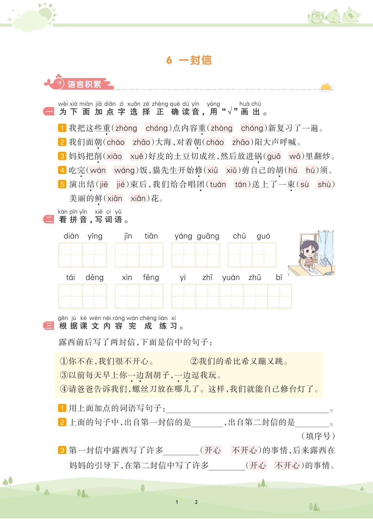 2020上册二年级语文人教版 第三单元 课文——5 玲玲的画