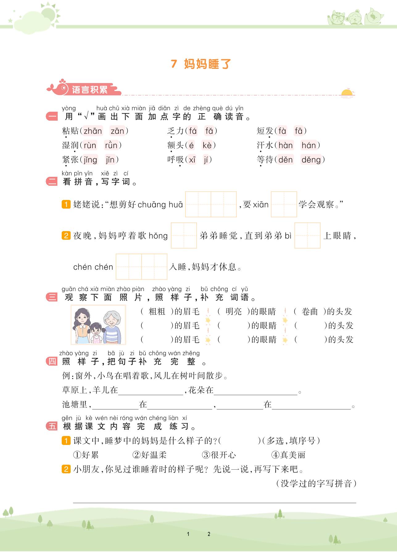 二年级语文人教版上册课时作业