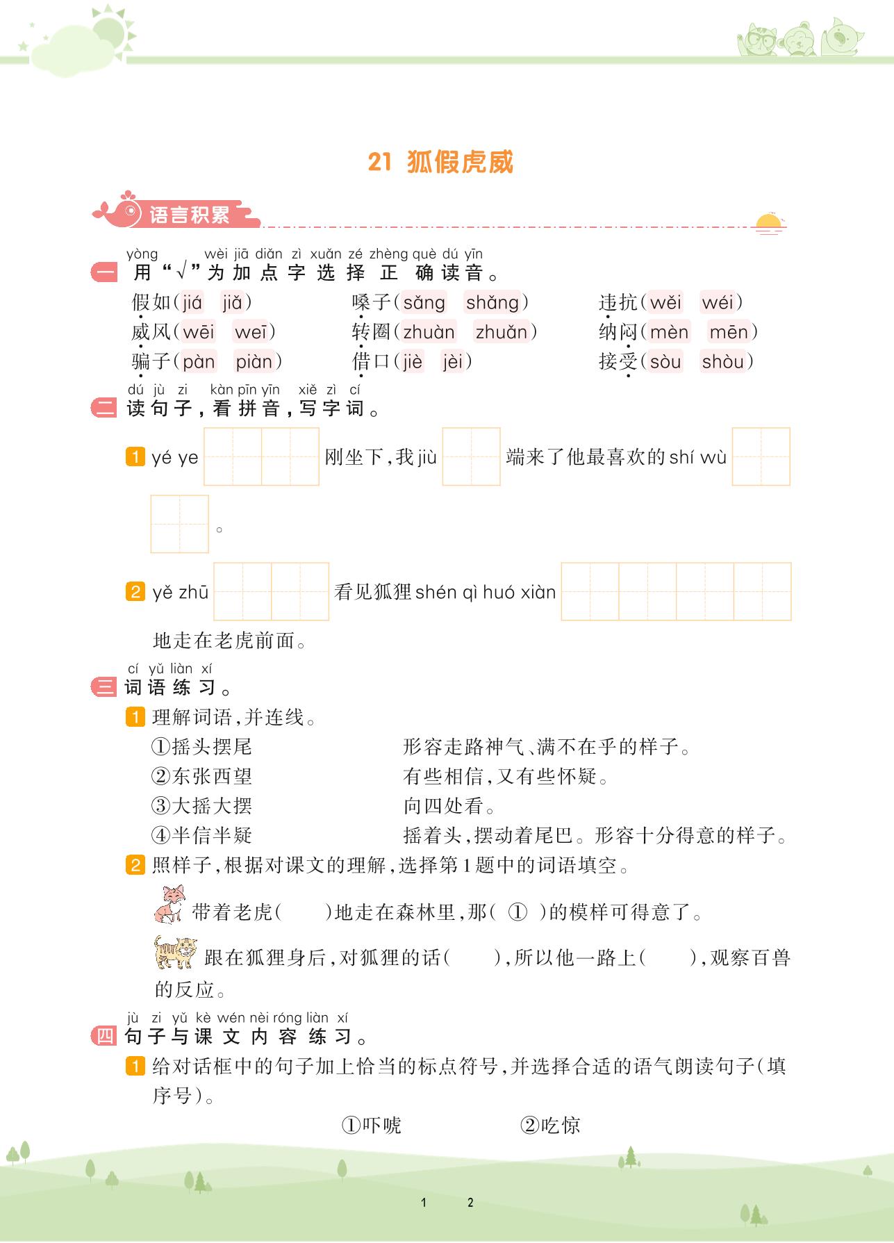 2020上册二年级语文人教版 第八单元 课文——21 狐假虎威
