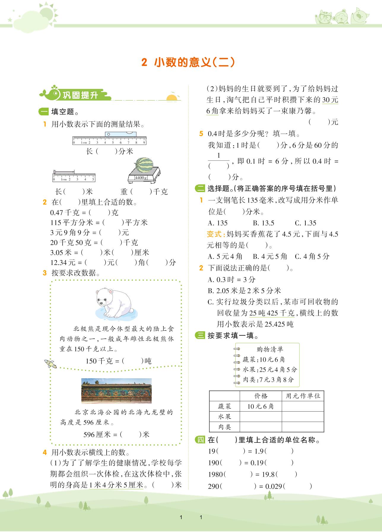 2021下册四年级数学北师版 第一单元 小数的意义和加减法——2 小数的意义(二)