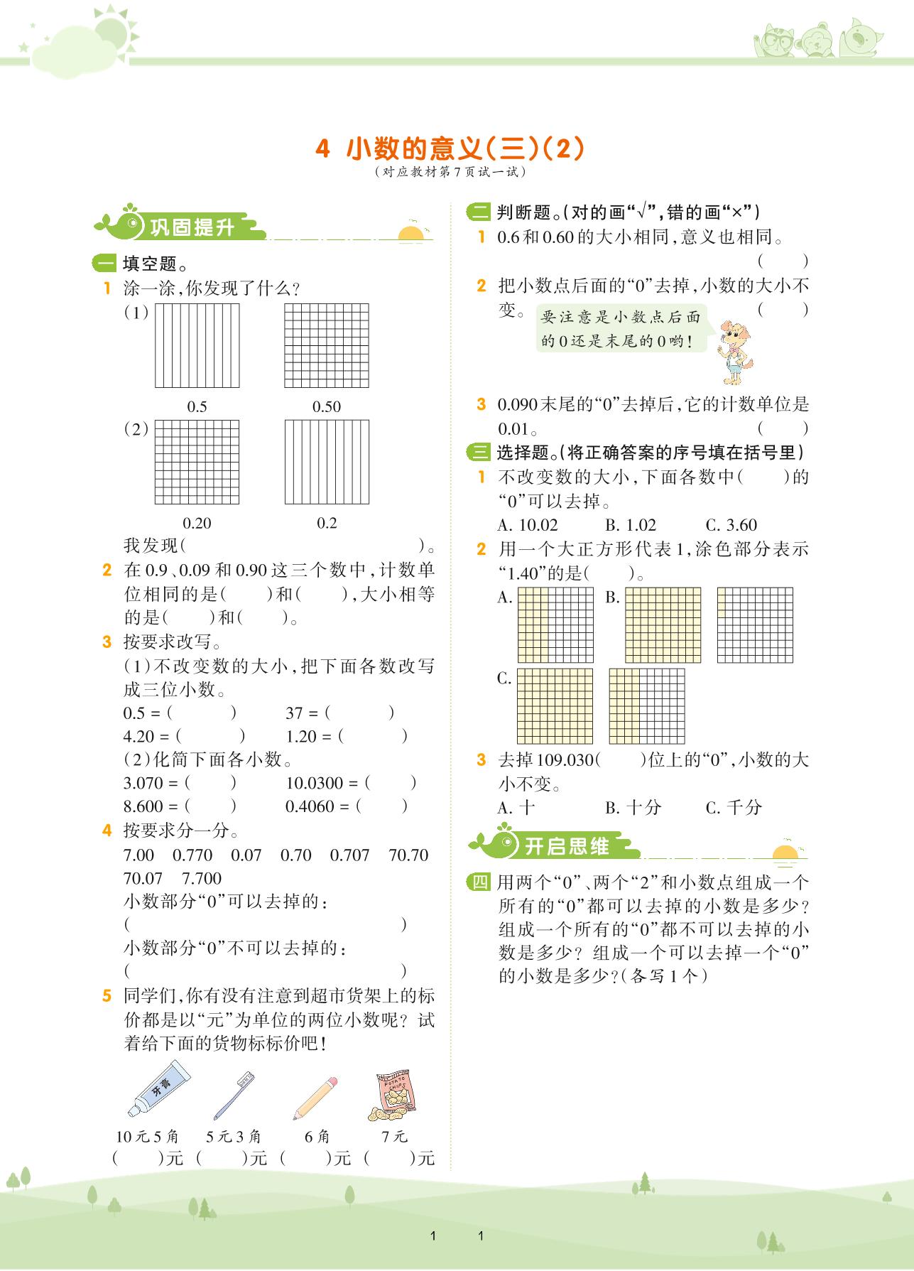 2021下册四年级数学北师版 第一单元 小数的意义和加减法——4 小数的意义(三)(2)