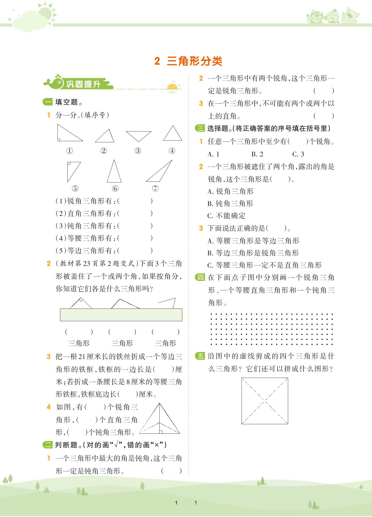2021下册四年级数学北师版 第二单元 认识三角形和四边形——2 三角形分类