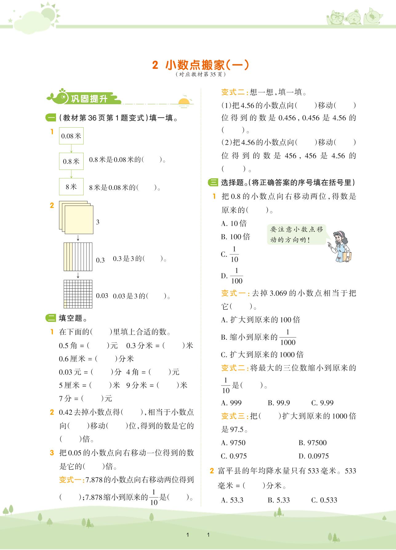 2021下册四年级数学北师版 第三单元 小数乘法——2 小数点搬家(一)