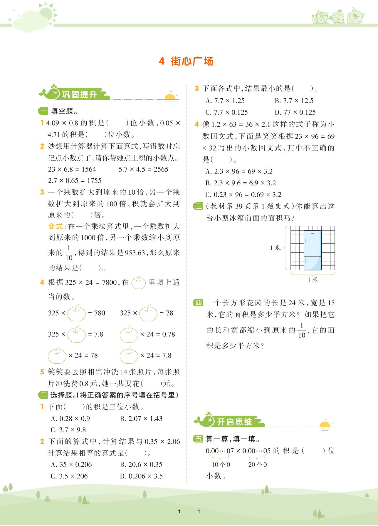 2021下册四年级数学北师版 第三单元 小数乘法——4 街心广场