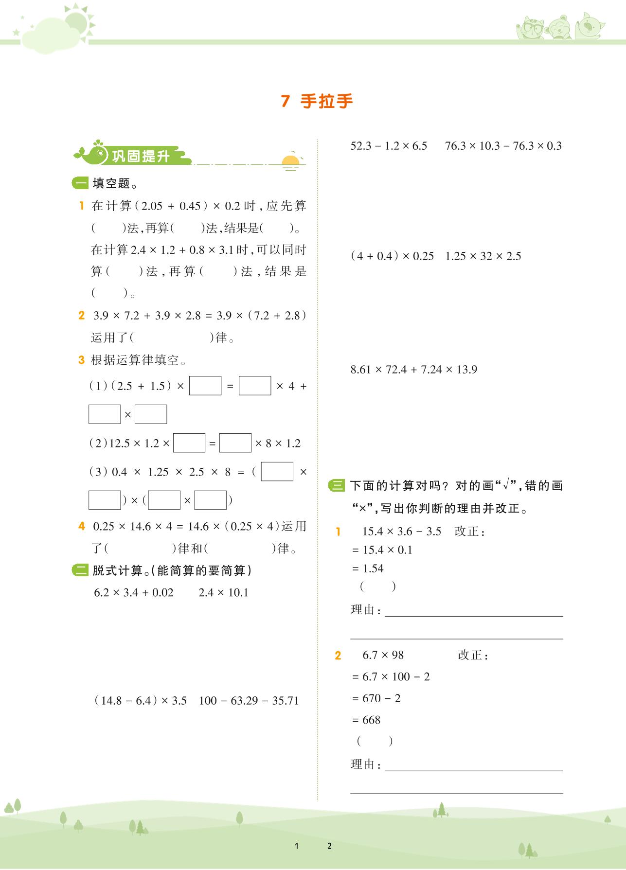 2021下册四年级数学北师版 第三单元 小数乘法——7 手拉手