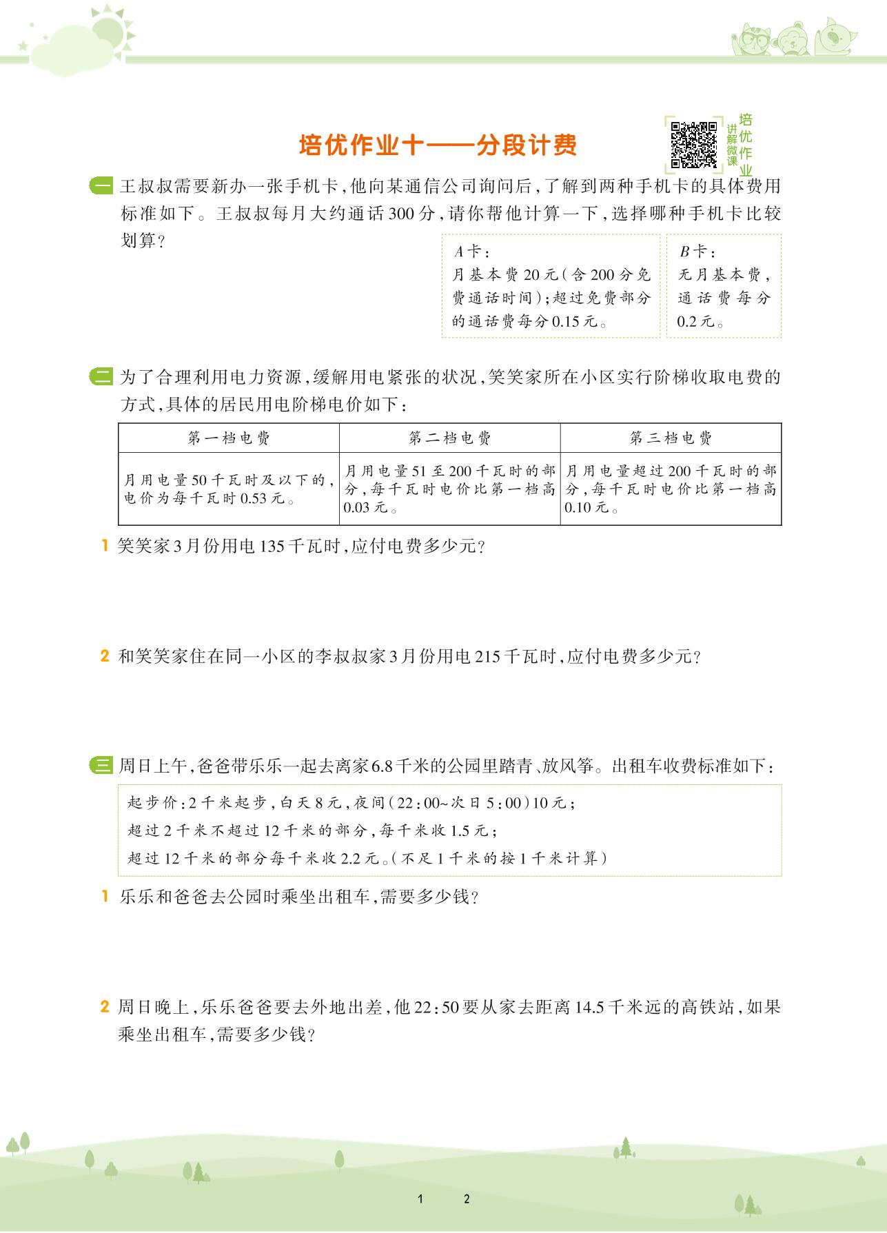 2021下册四年级数学北师版 第三单元 小数乘法——培优作业十 分段计费