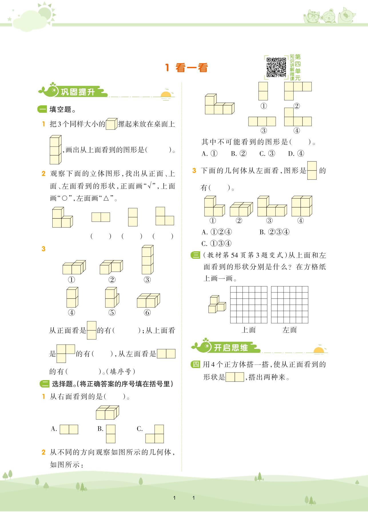 2021下册四年级数学北师版 第四单元 观察物体——1 看一看