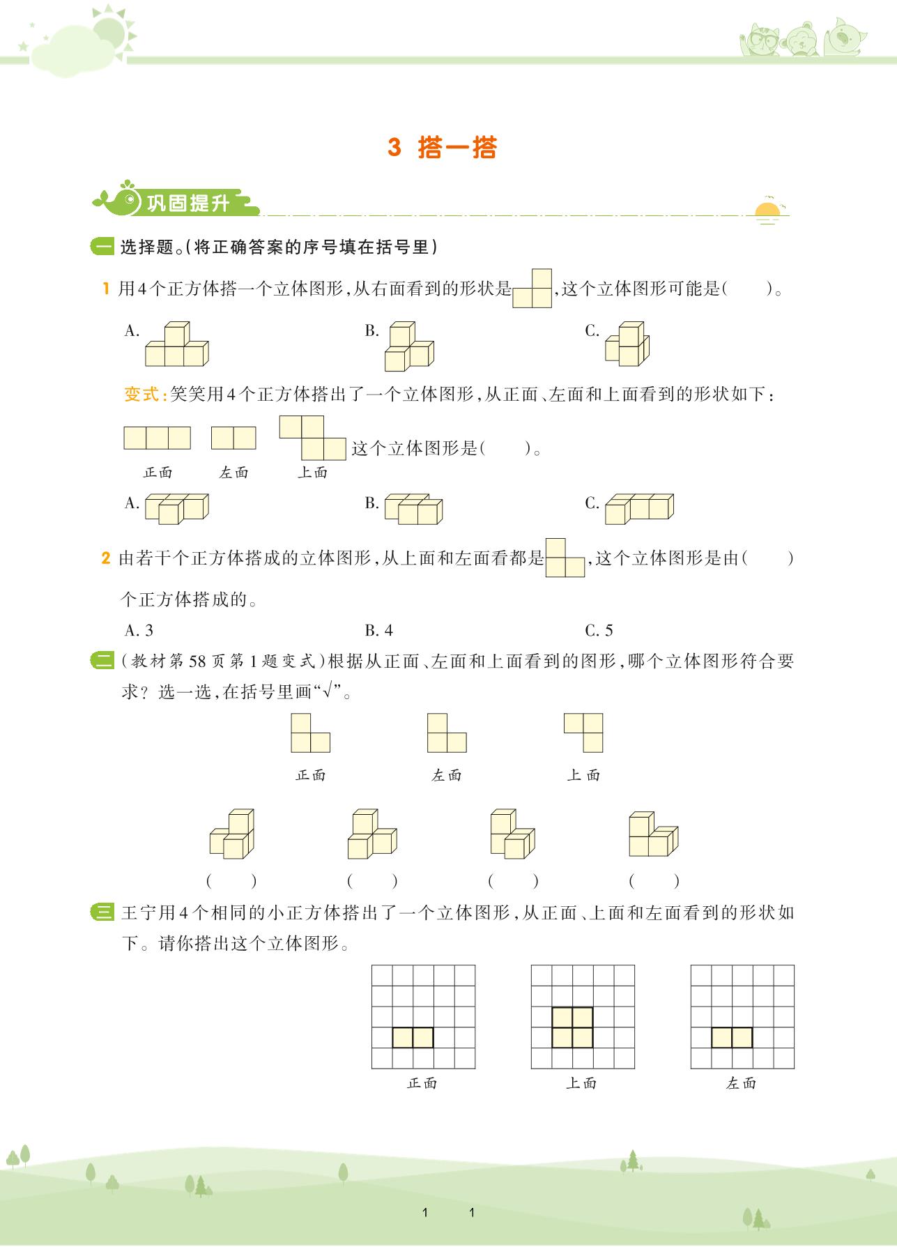 2021下册四年级数学北师版 第四单元 观察物体——3 搭一搭