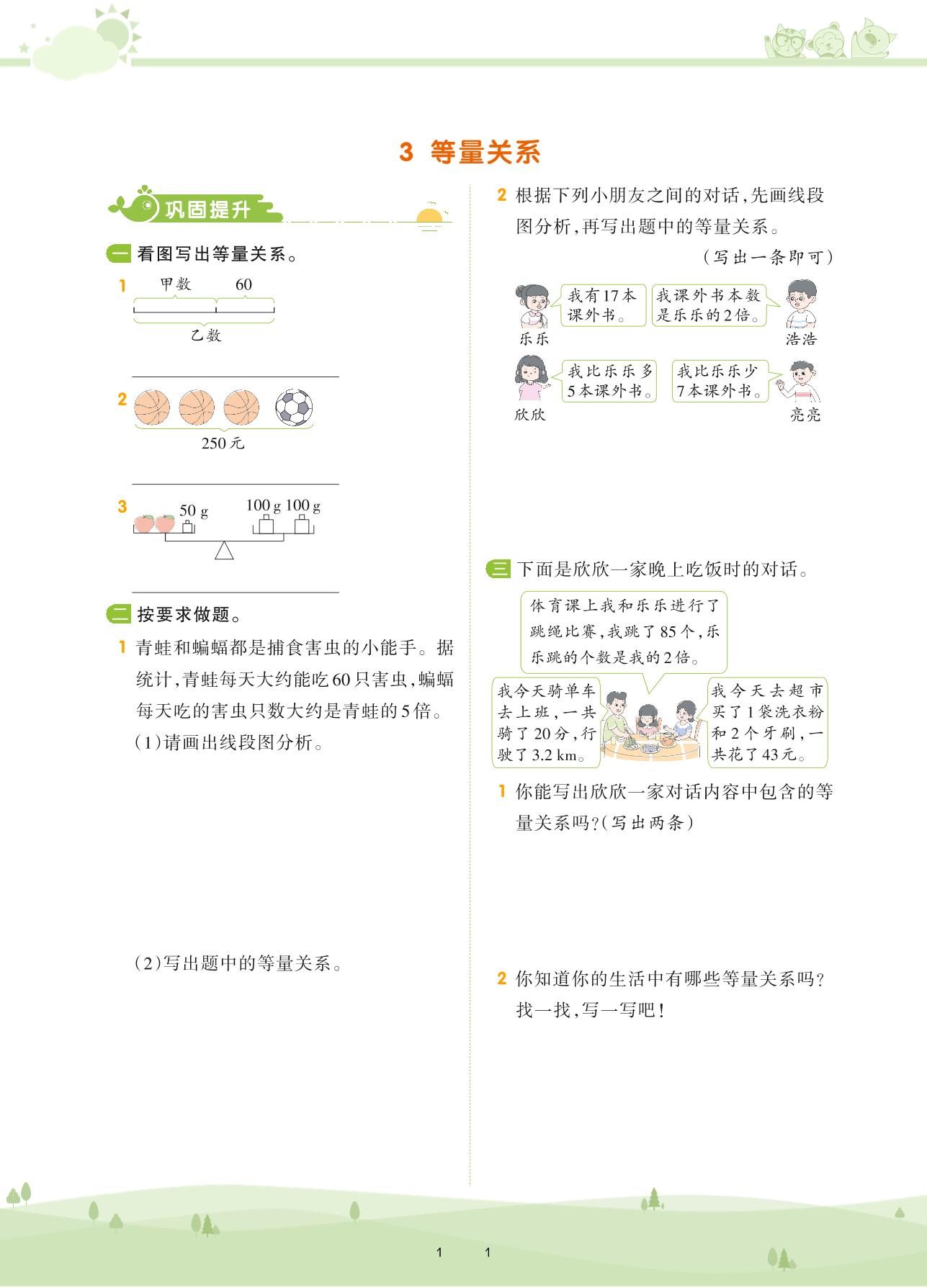 2021下册四年级数学北师版 第五单元 认识方程——3 等量关系