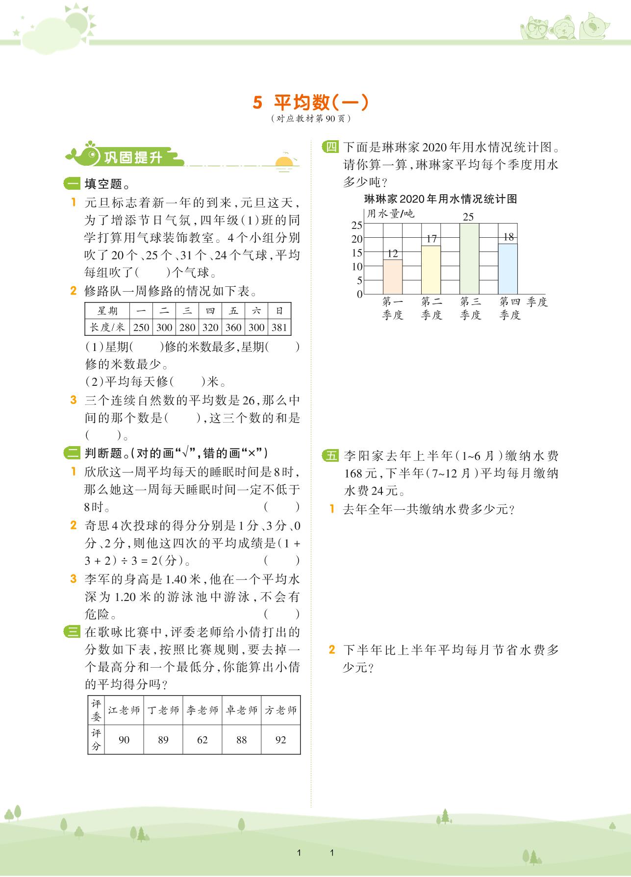 2021下册四年级数学北师版 第六单元 数据的表示和分析——5 平均数(一)