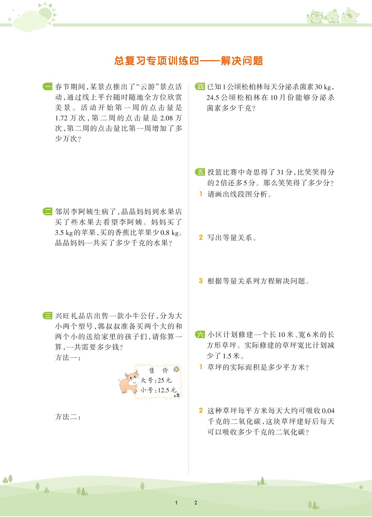 2021下册四年级数学北师版 总复习——解决问题