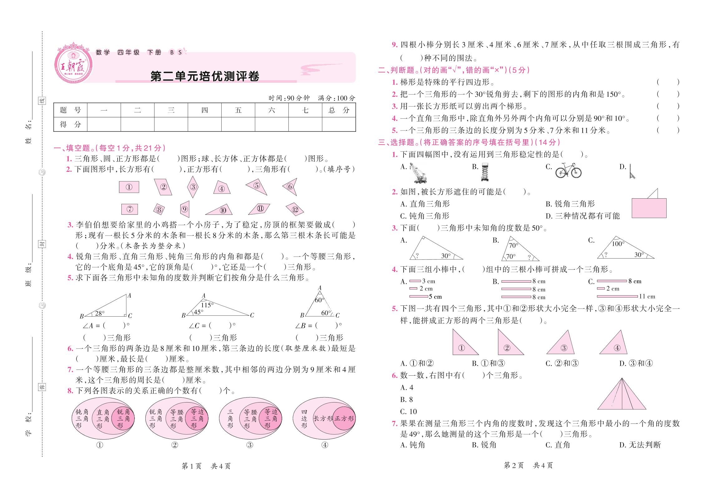 四年级数学北师版下册单元卷