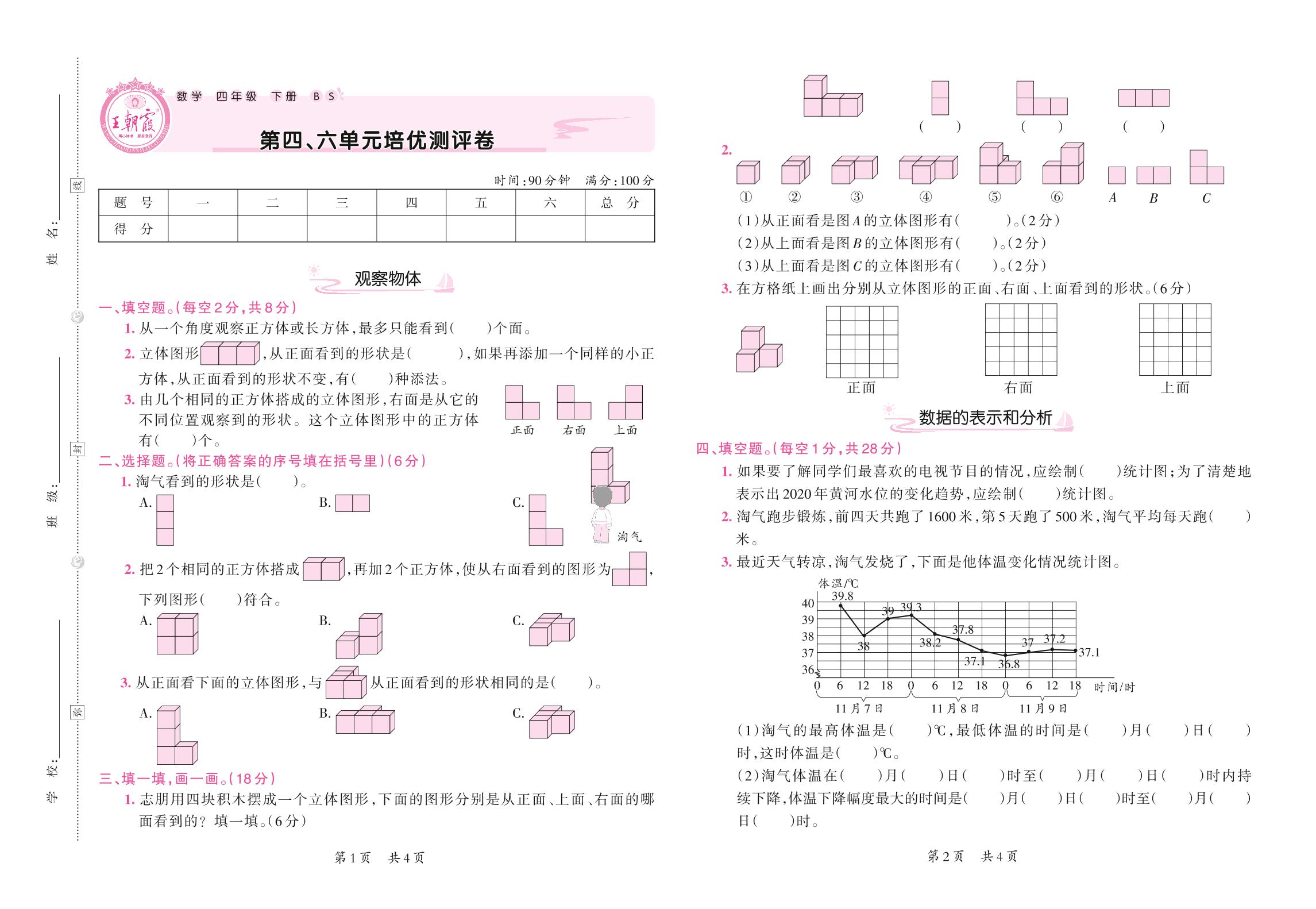 2021下册四年级数学北师版 第四、六单元培优测评卷