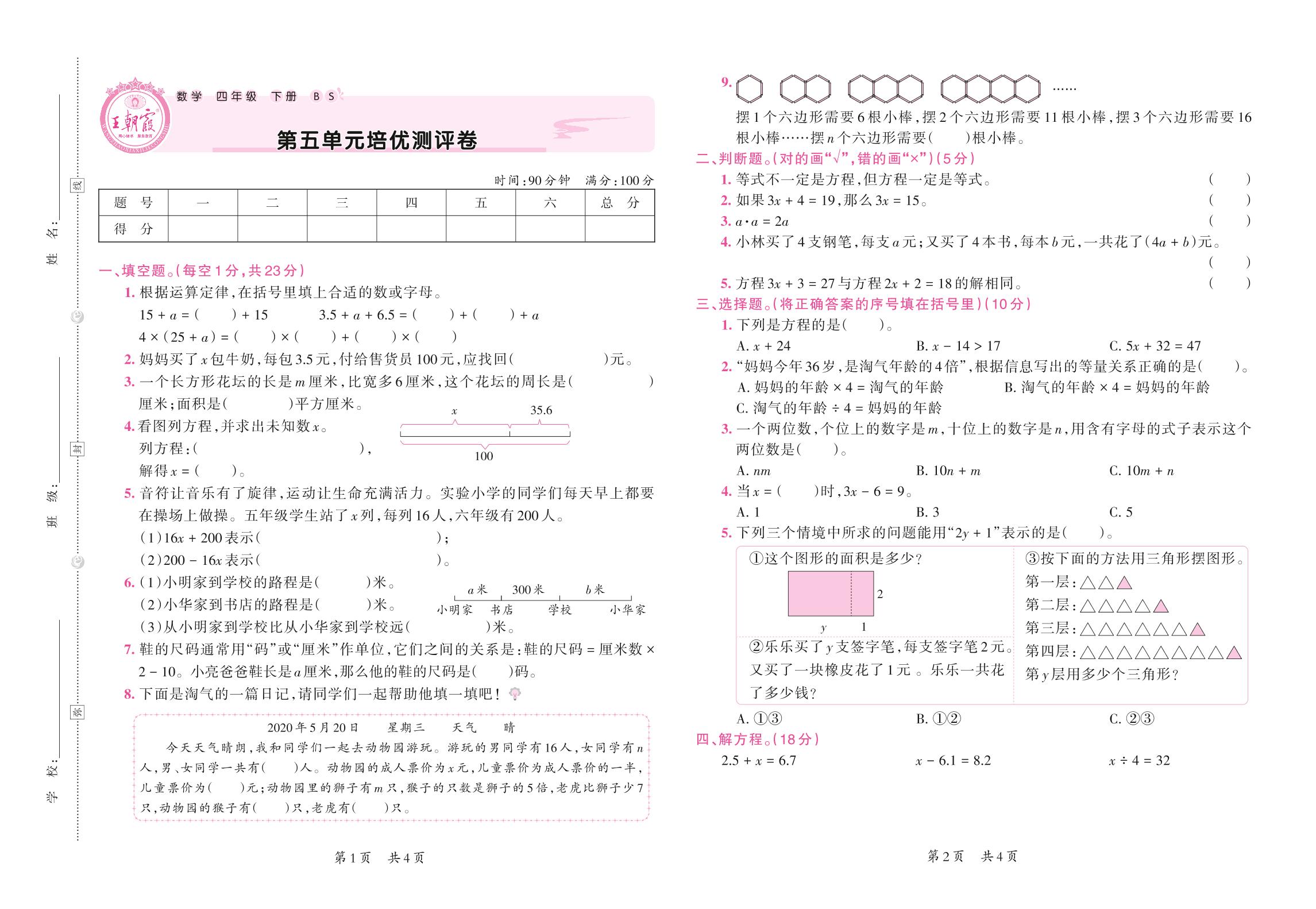 四年级数学北师版下册单元卷