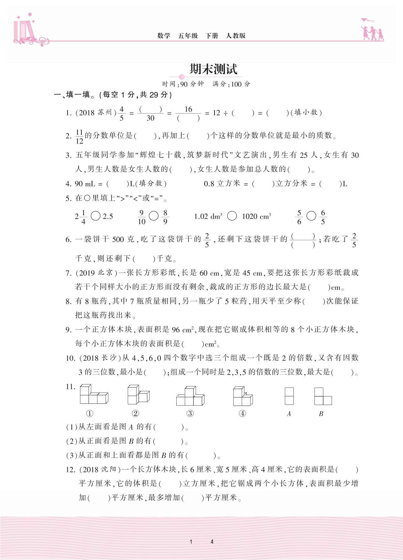 五年级数学人教版下册期末卷