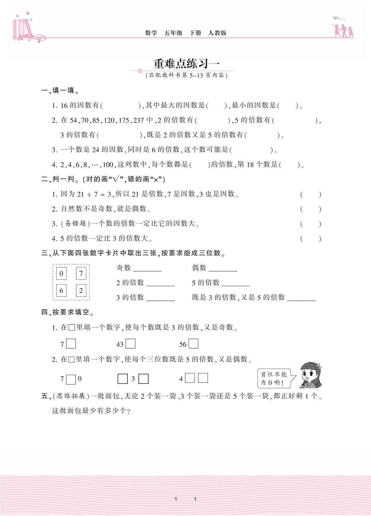 2021下册五年级数学人教版 2 因数与倍数——重难点练习一