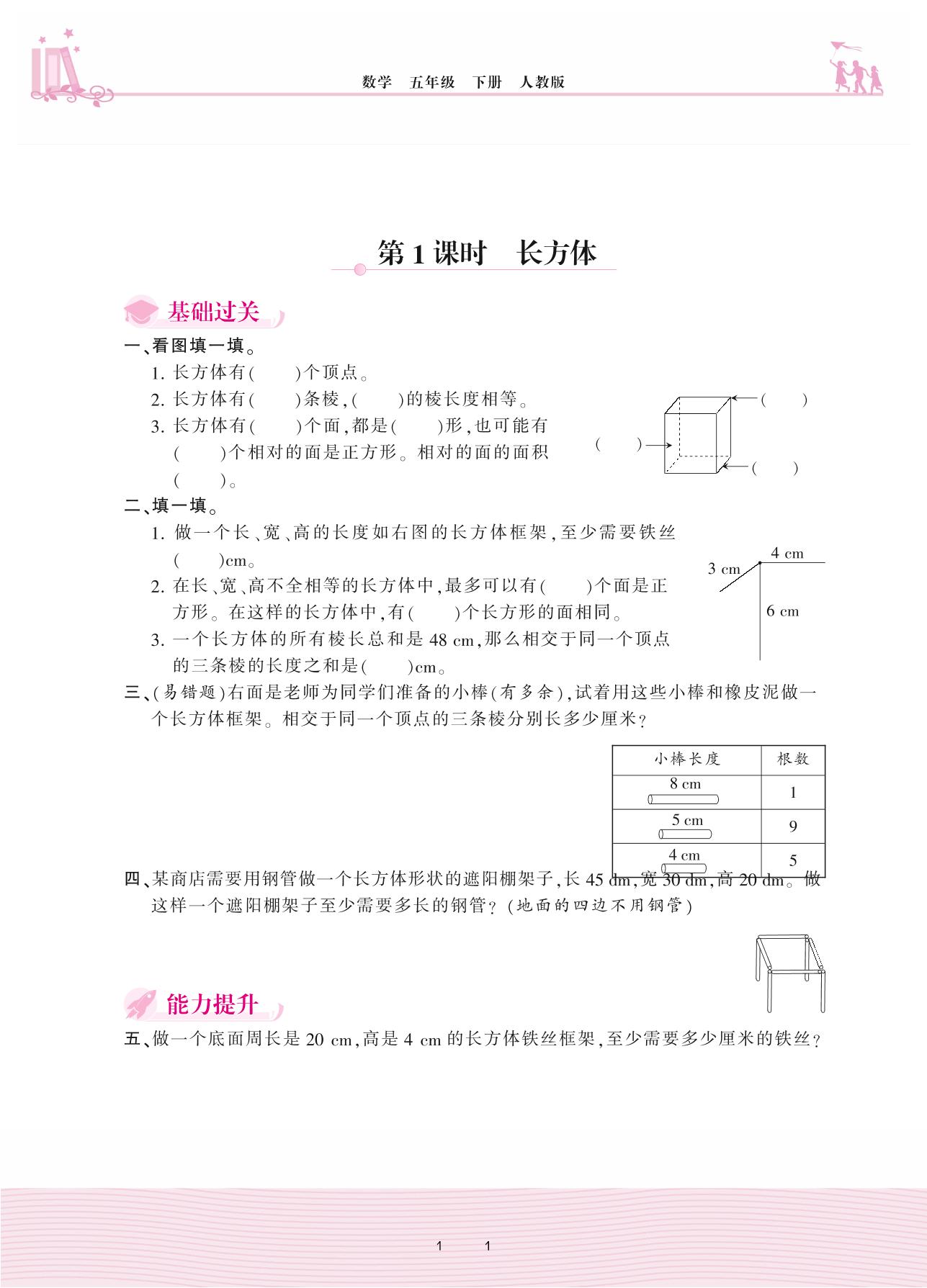 2021下册五年级数学人教版 3 长方体和正方体 1. 长方体和正方体的认识——第1课时 长方体
