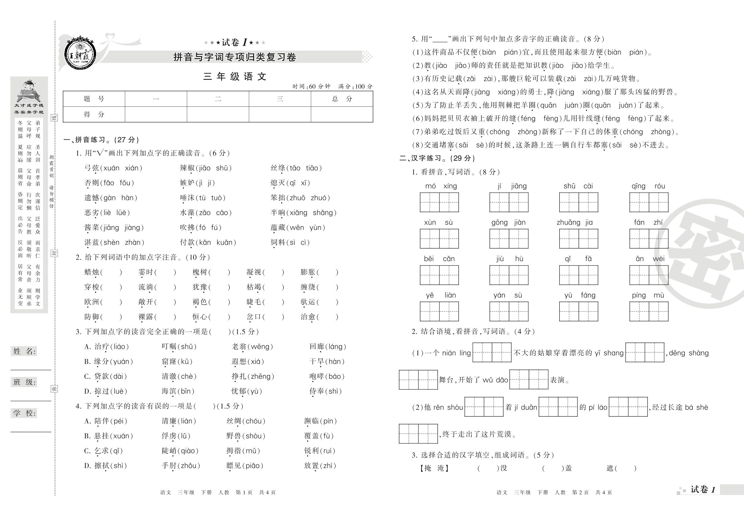 王朝霞期末专项卷三年级下册语文(人教版)_R210801104629【1】
