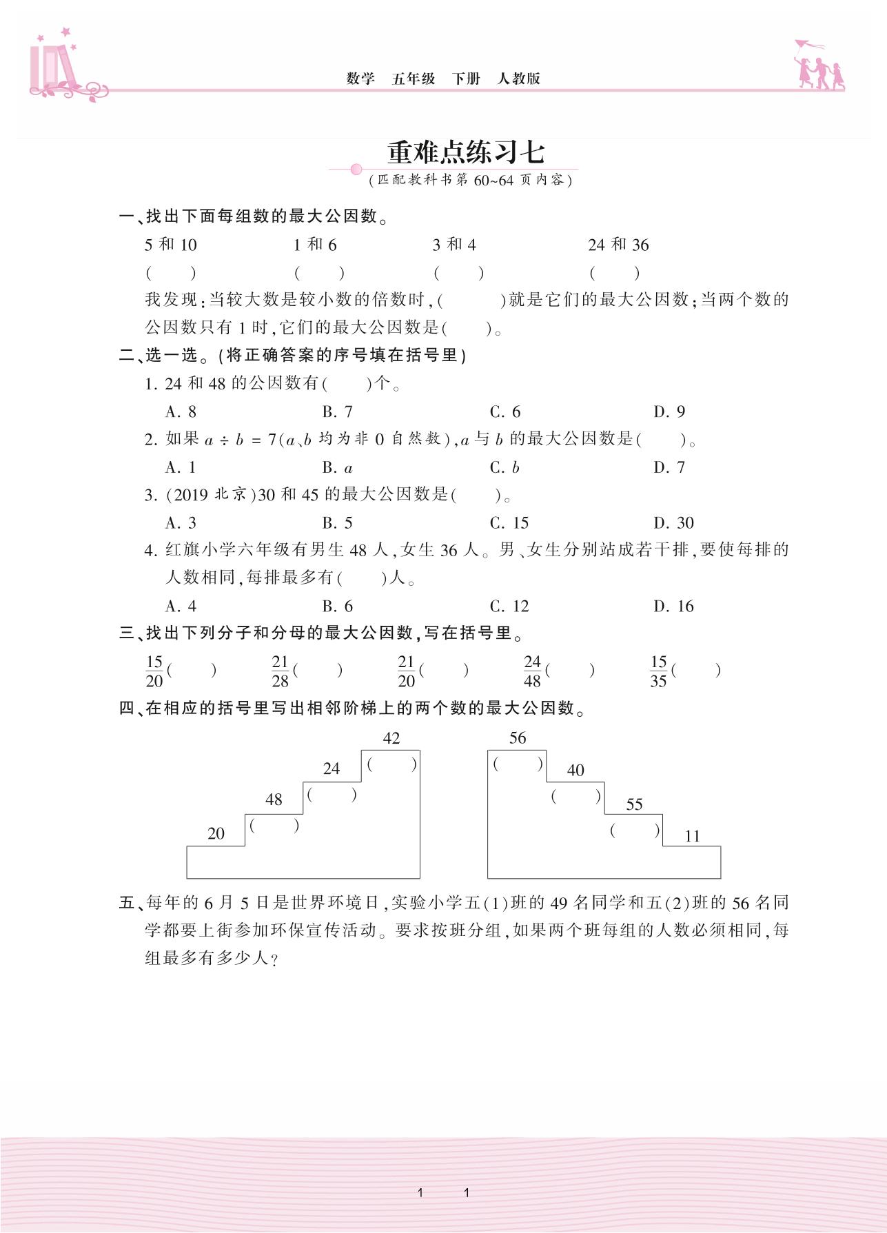 2021下册五年级数学人教版 4 分数的意义和性质 ——重难点练习七