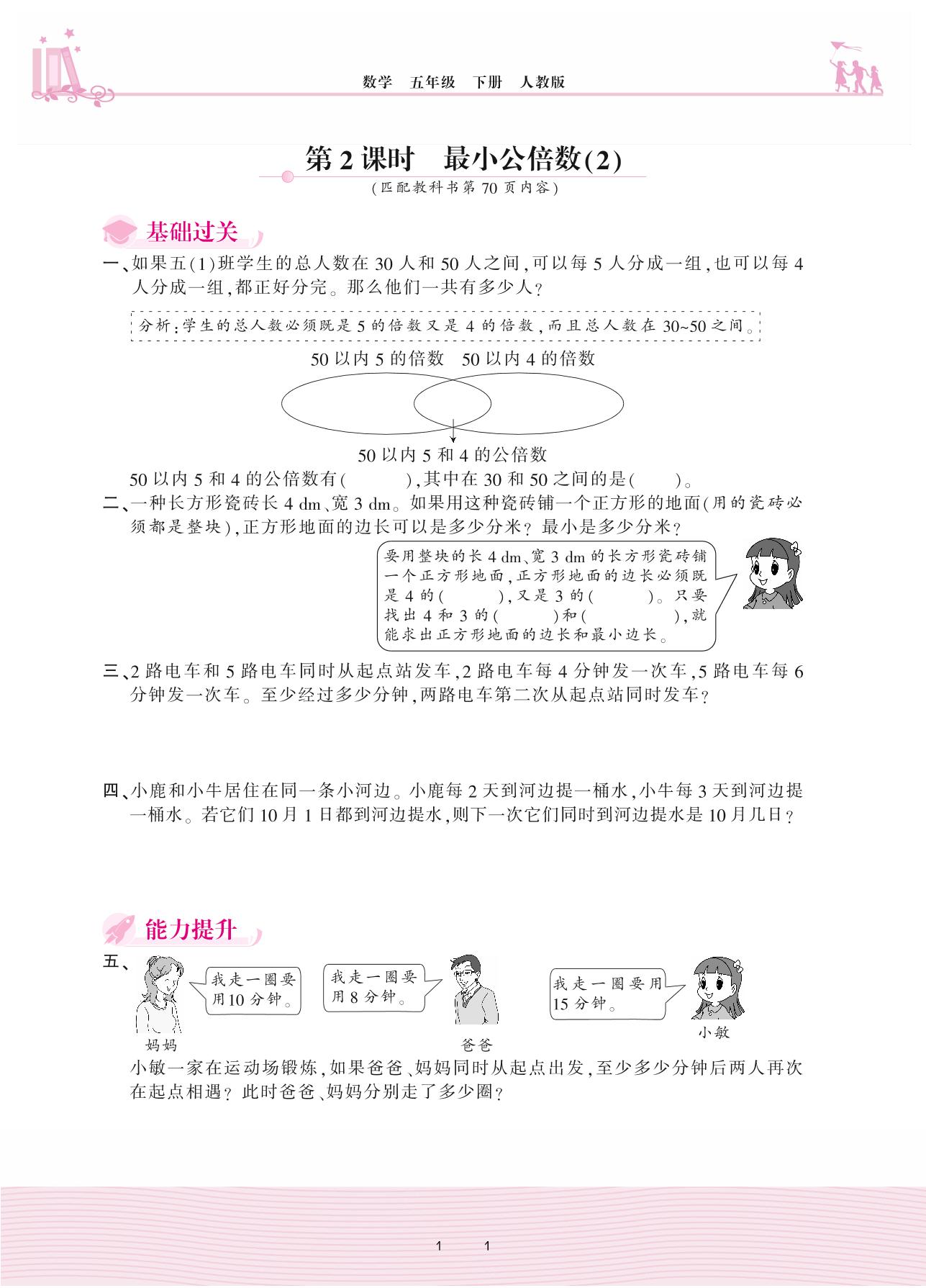 2021下册五年级数学人教版 4 分数的意义和性质 5. 通分——第2课时 最小公倍数(2)