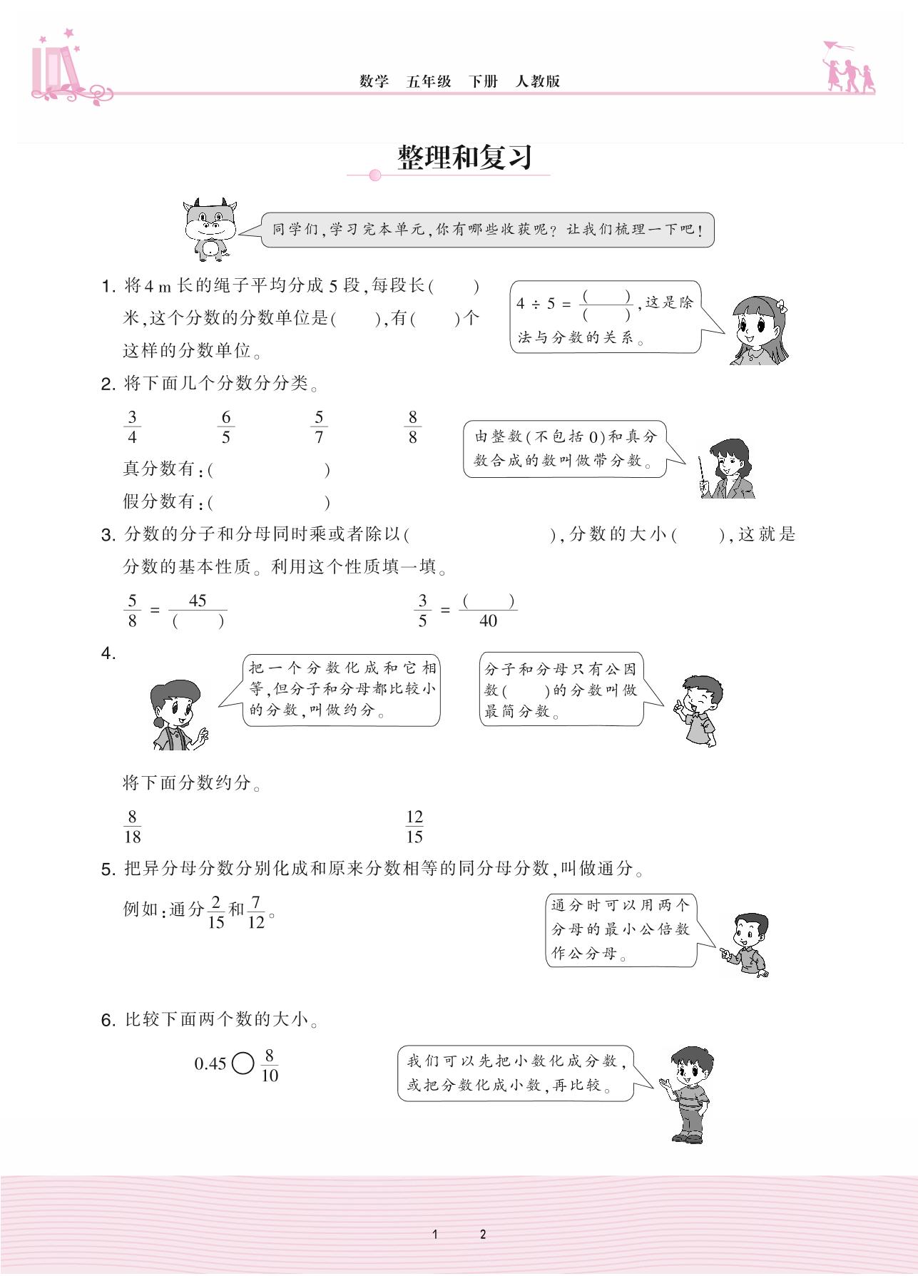 2021下册五年级数学人教版 4 分数的意义和性质——整理和复习
