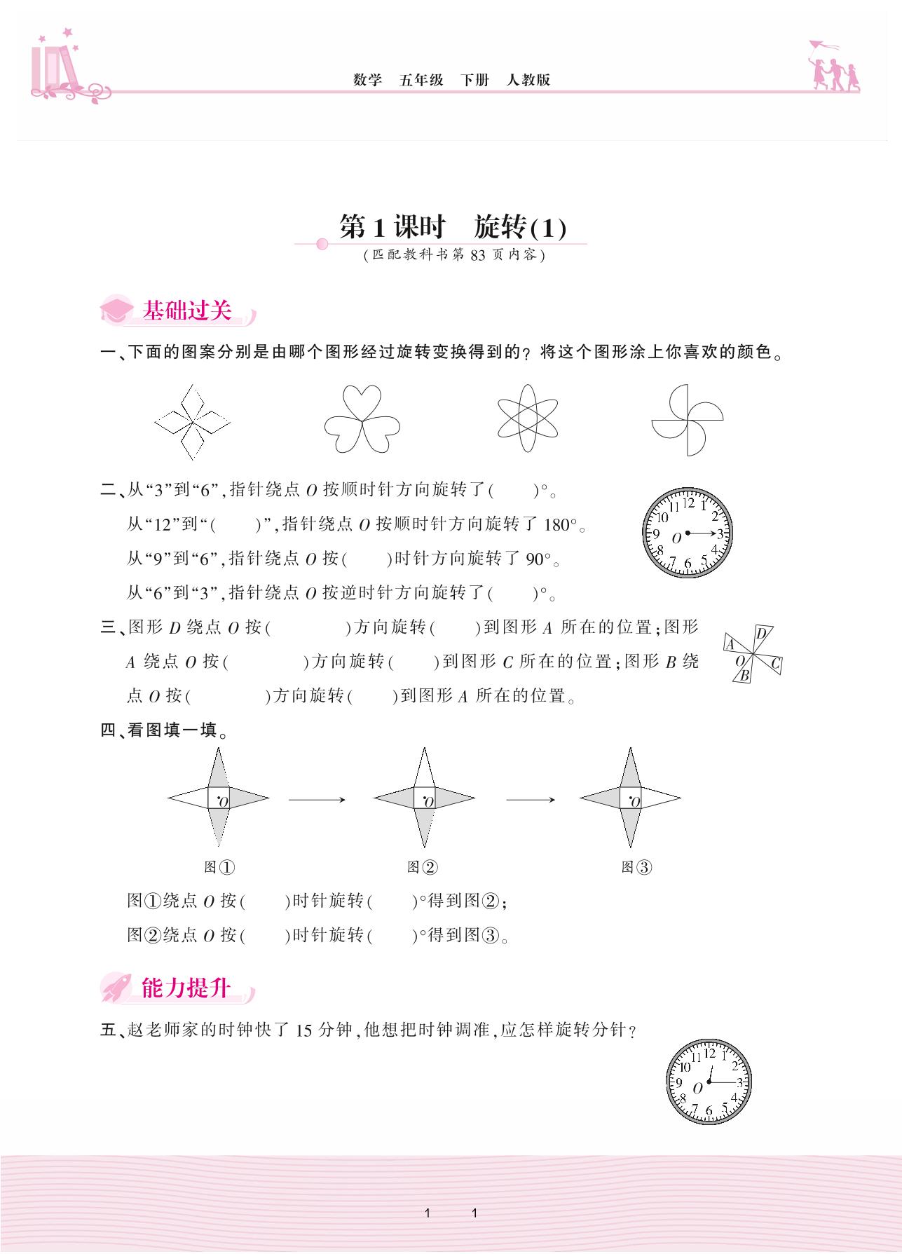 2021下册五年级数学人教版 5 图形的运动(三)——第1课时 旋转(1)
