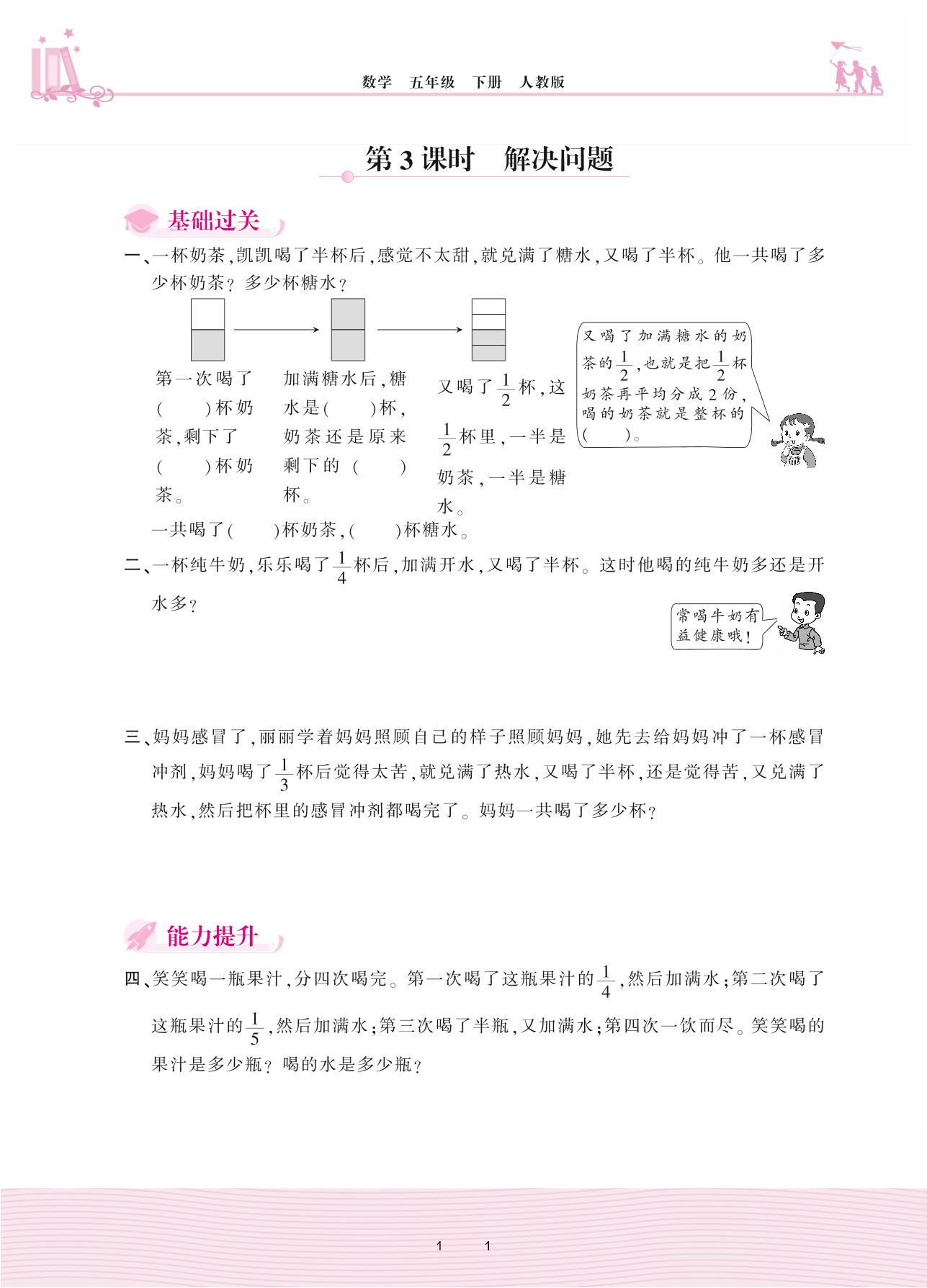 2021下册五年级数学人教版 6 分数的加法和减法 3. 分数加减混合运算——第3课时 解决问题